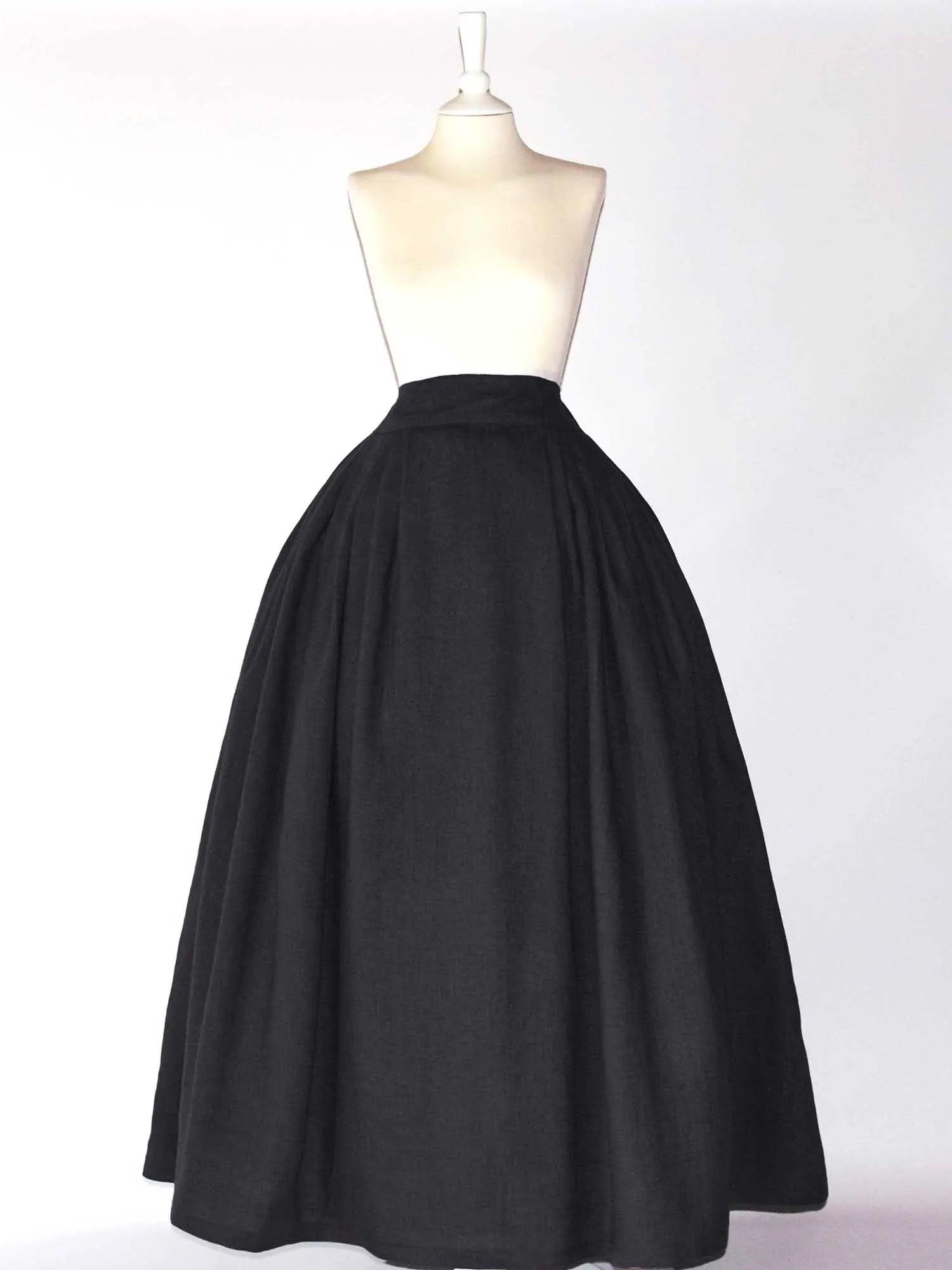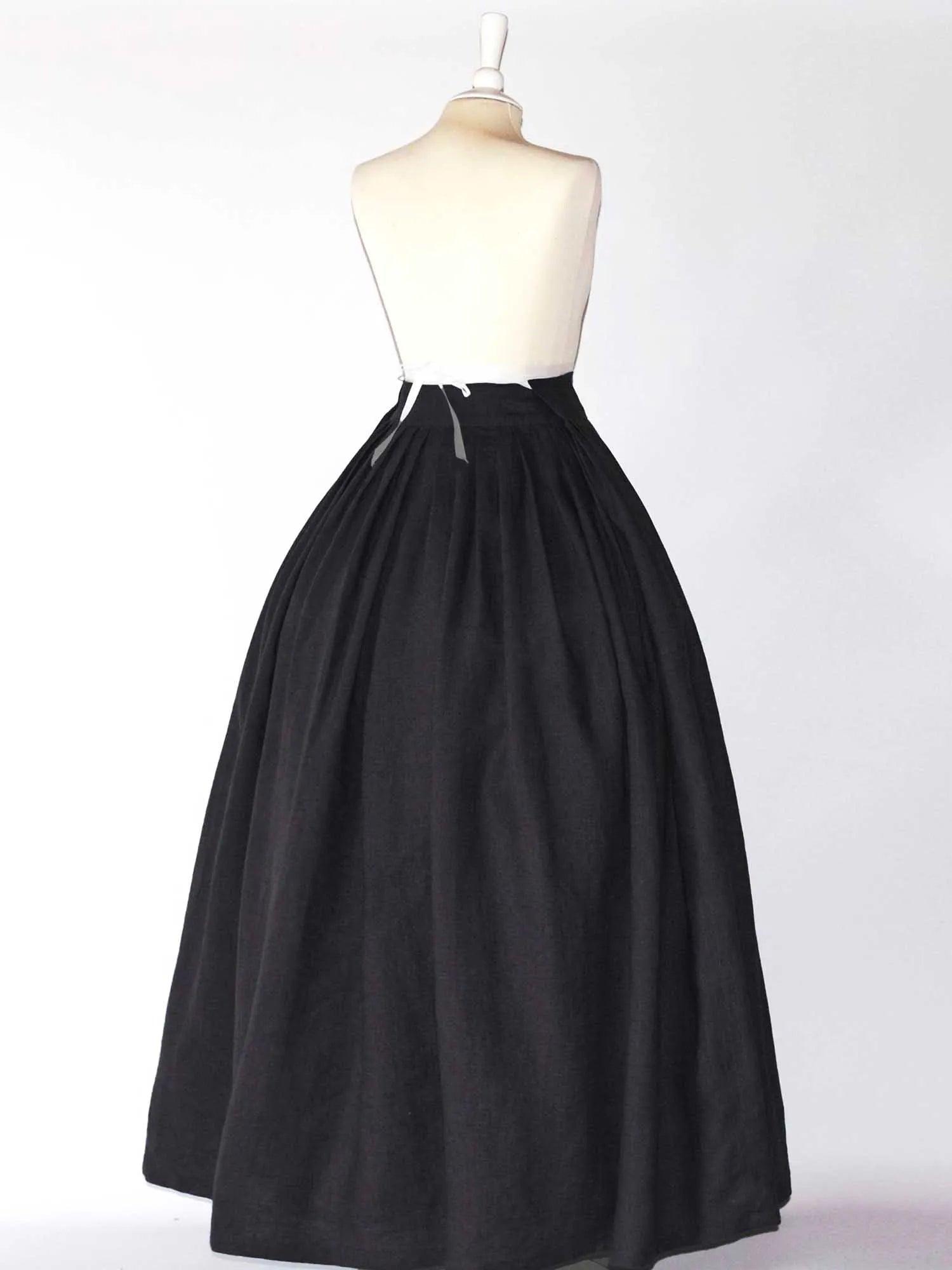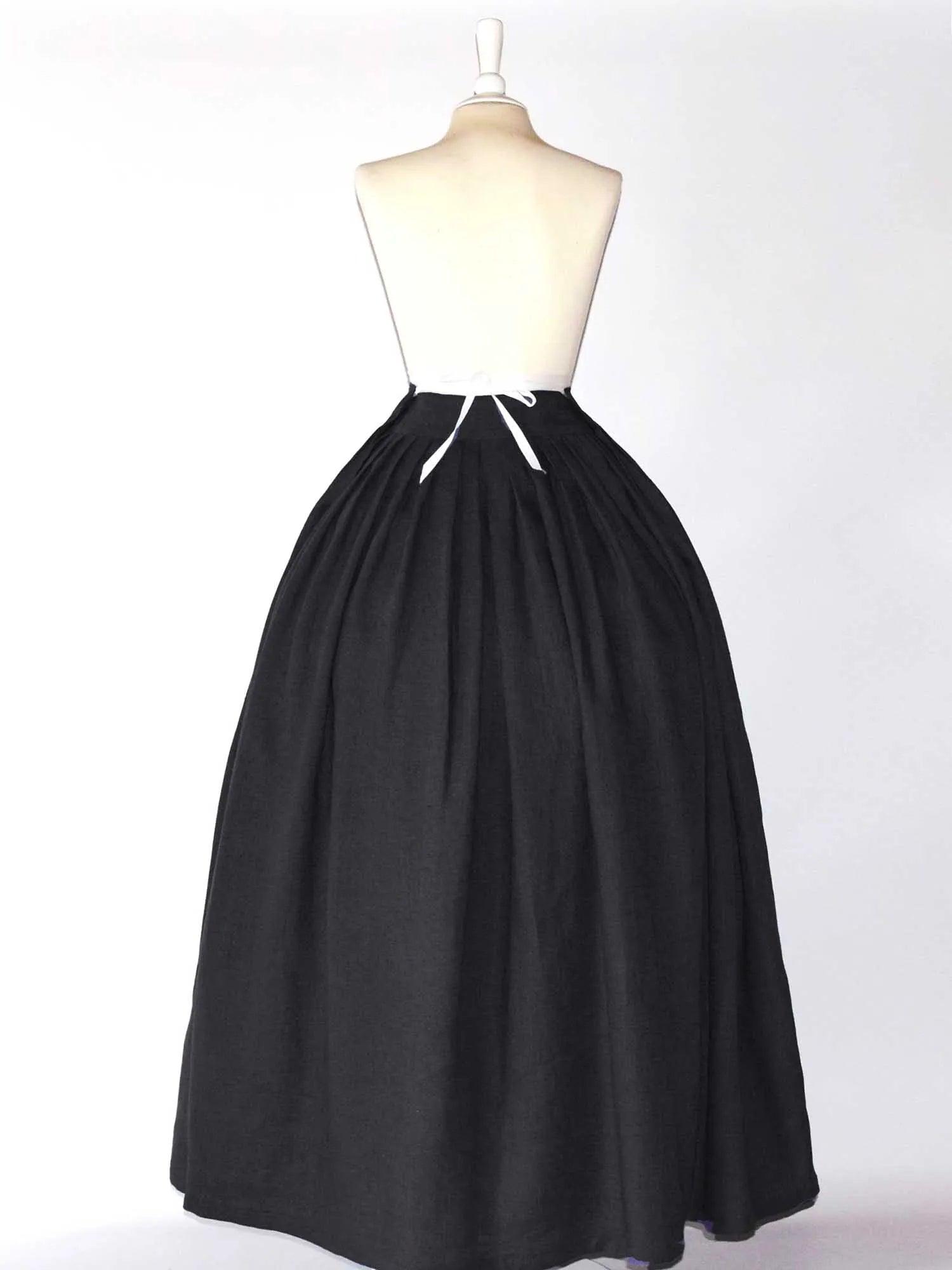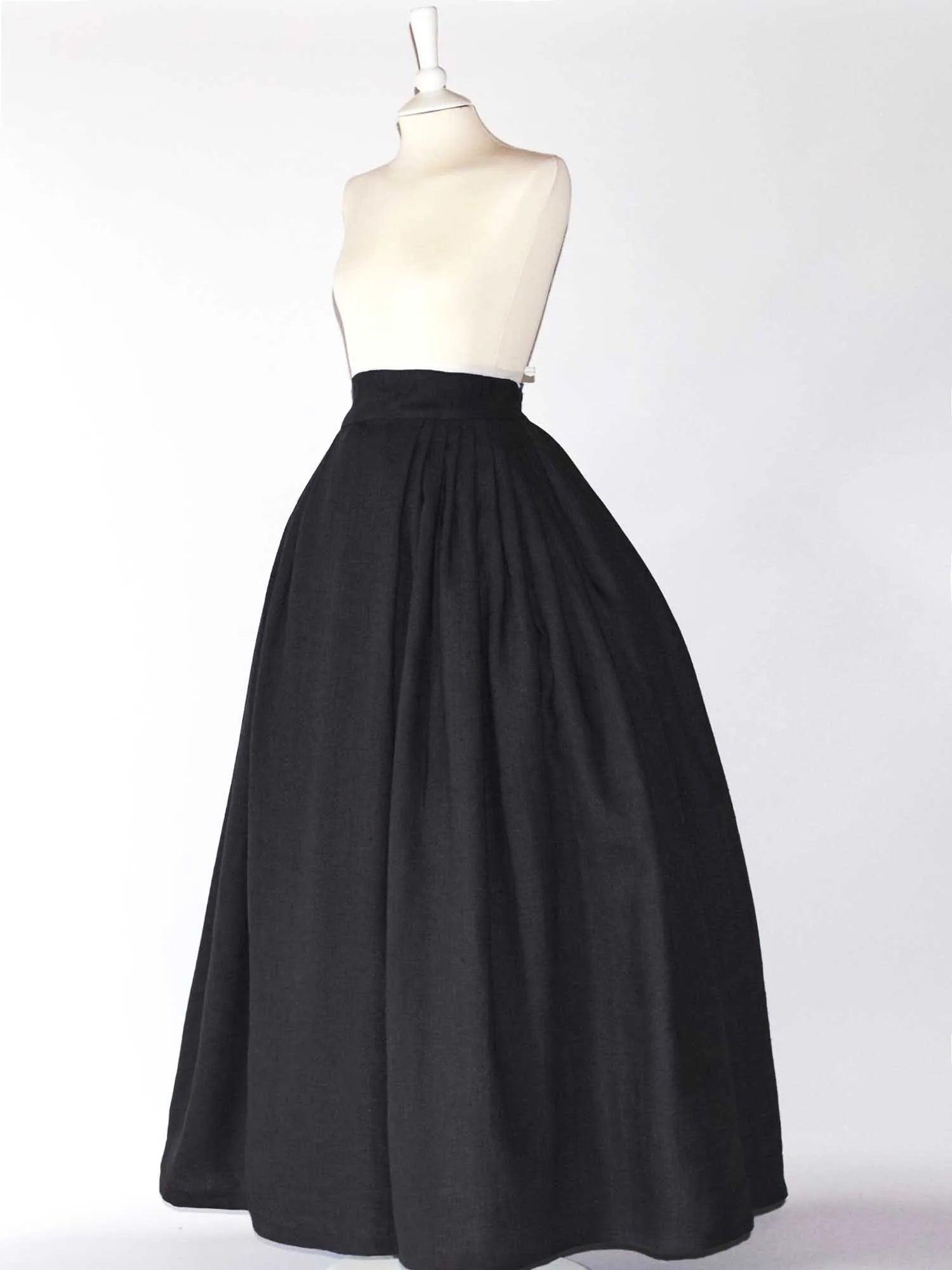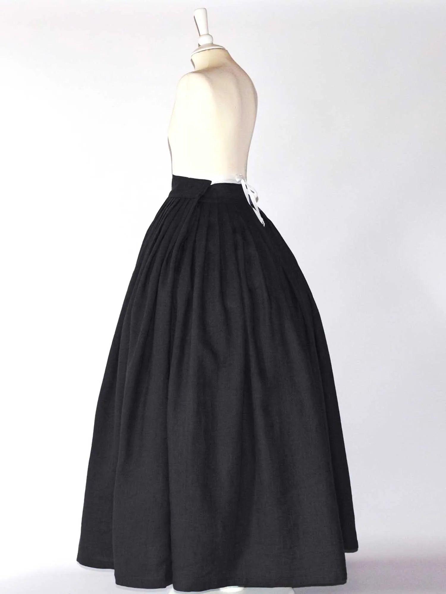 Step back in time with HELOISE, our Historical Skirt in Black Linen. Ideal for historical events or everyday wear, this meticulously handcrafted skirt features 18th century pleating with 100% organic mid-weight black linen for elegance and authenticity.