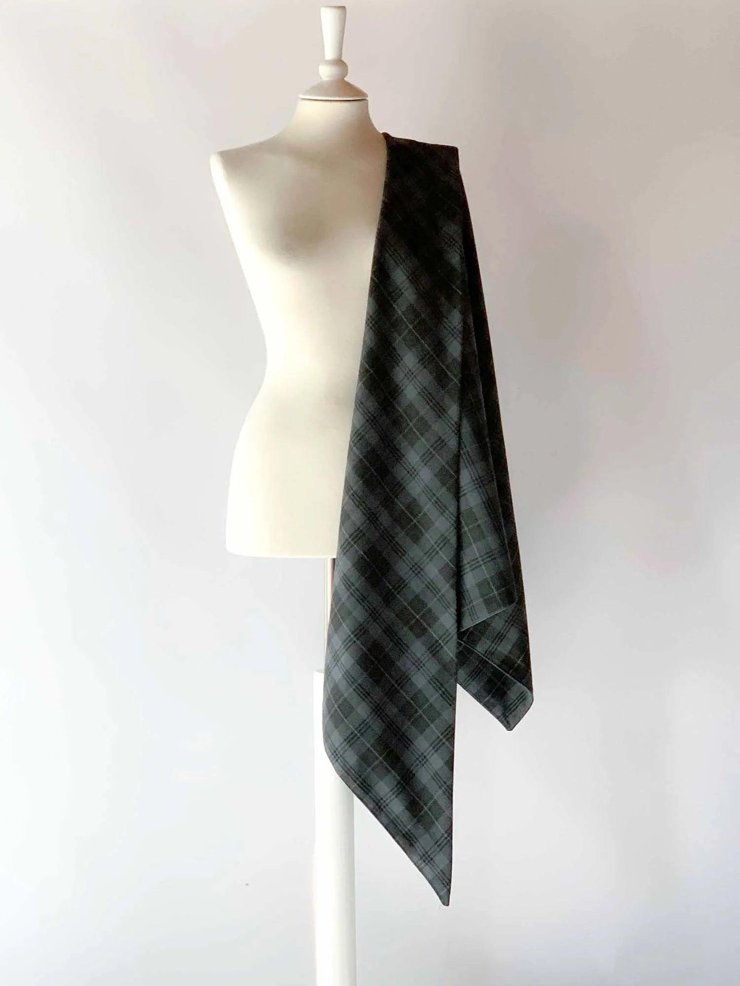 Measuring 150 cm on each side, it gracefully drapes over your shoulders, adding sophistication. Crafted from high-quality Silver Granite 15oz wool, our shawl offers the genuine tartan look and feel.