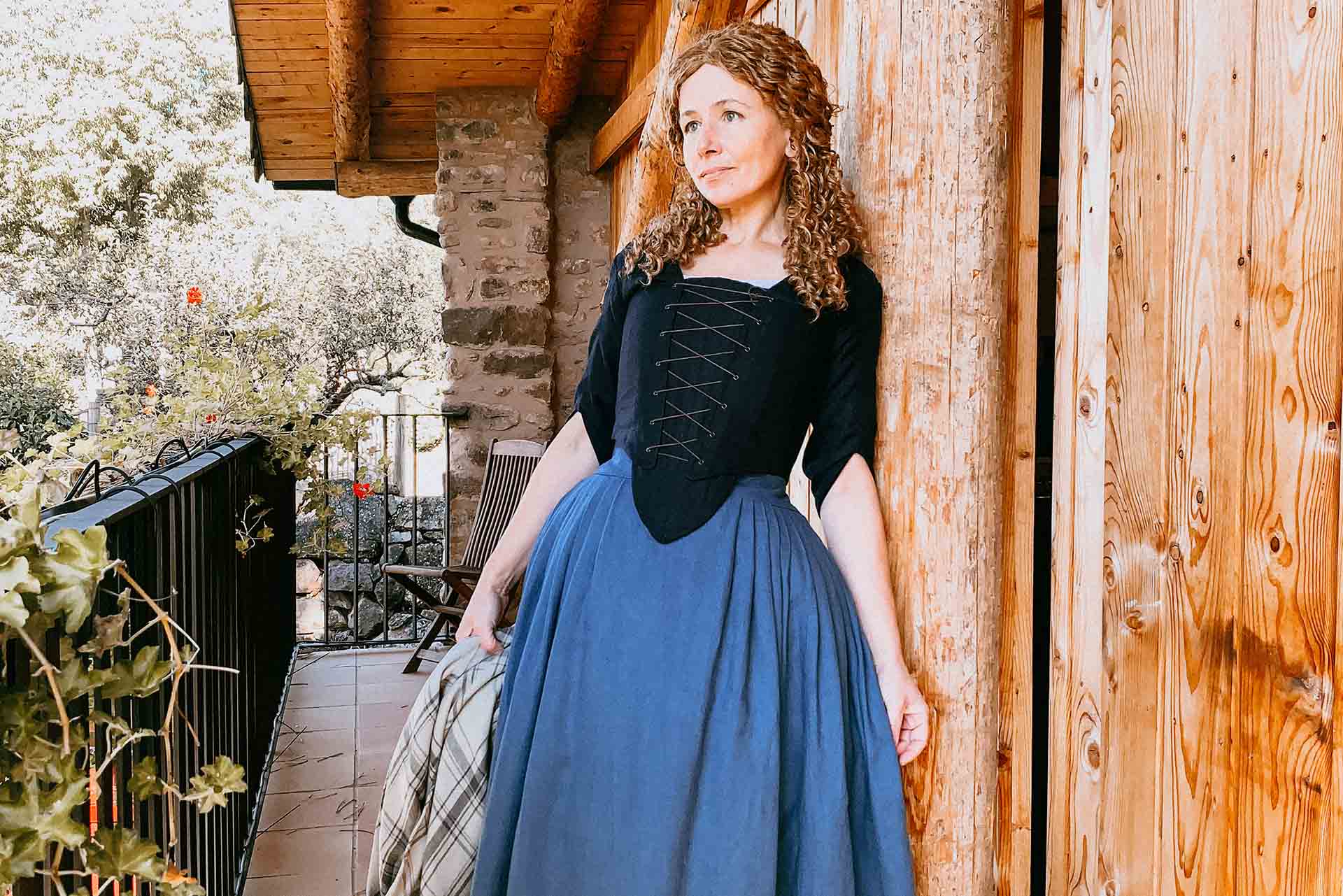 Dorine, Outlander Costume in Night Blue and Steel Blue Linen - Atelier Serraspina