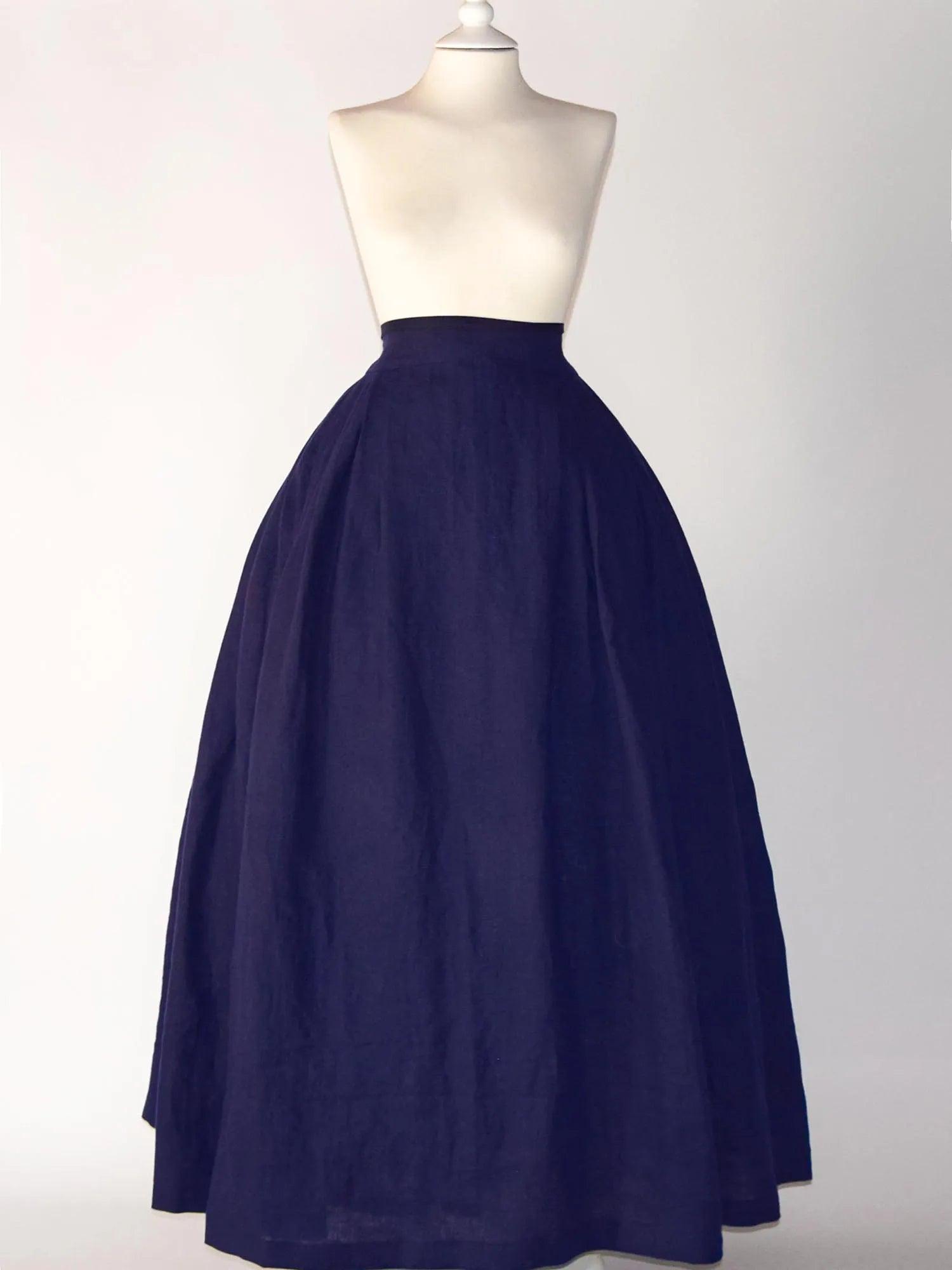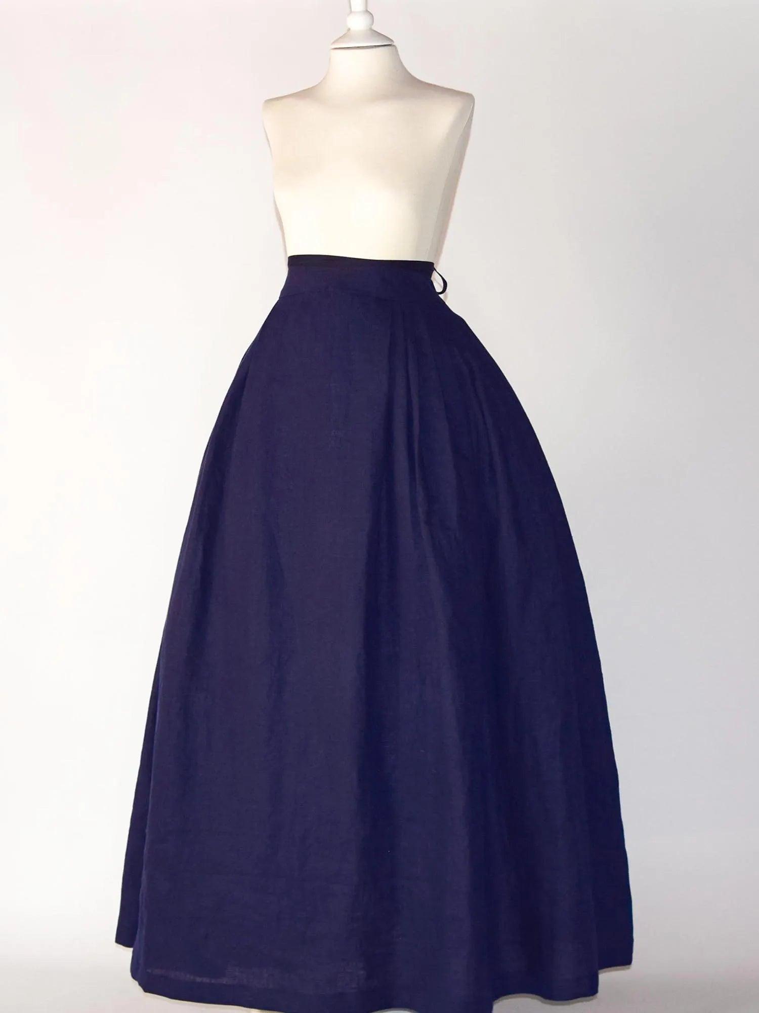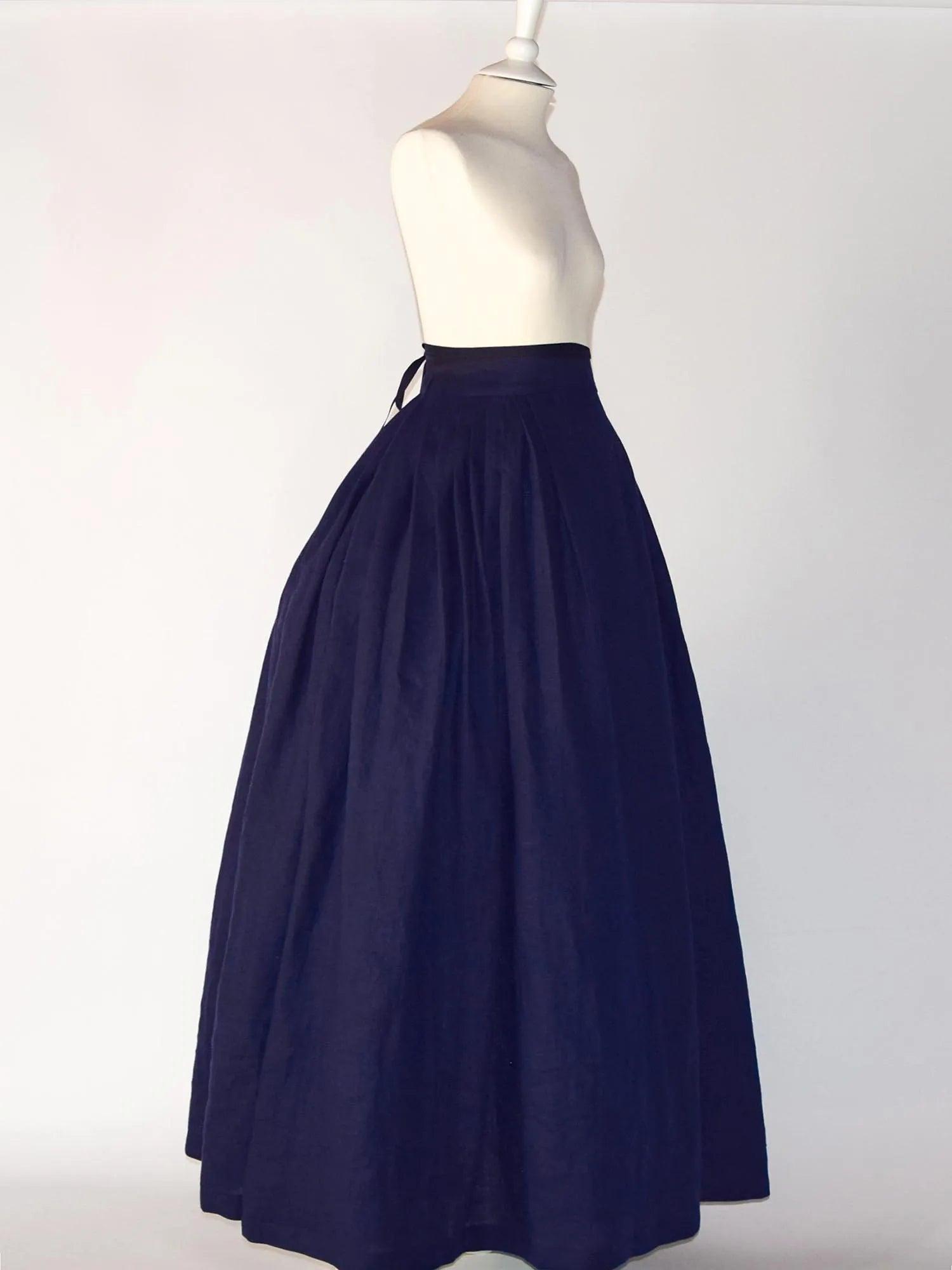 Made with care, this softened linen skirt features meticulously pleated panels that create a voluminous silhouette. It falls gracefully to an ankle length and has long ties for a secure fit. The night blue color adds sophistication, and you can easily pair it with any bodice, jacket, or overdress form the store.