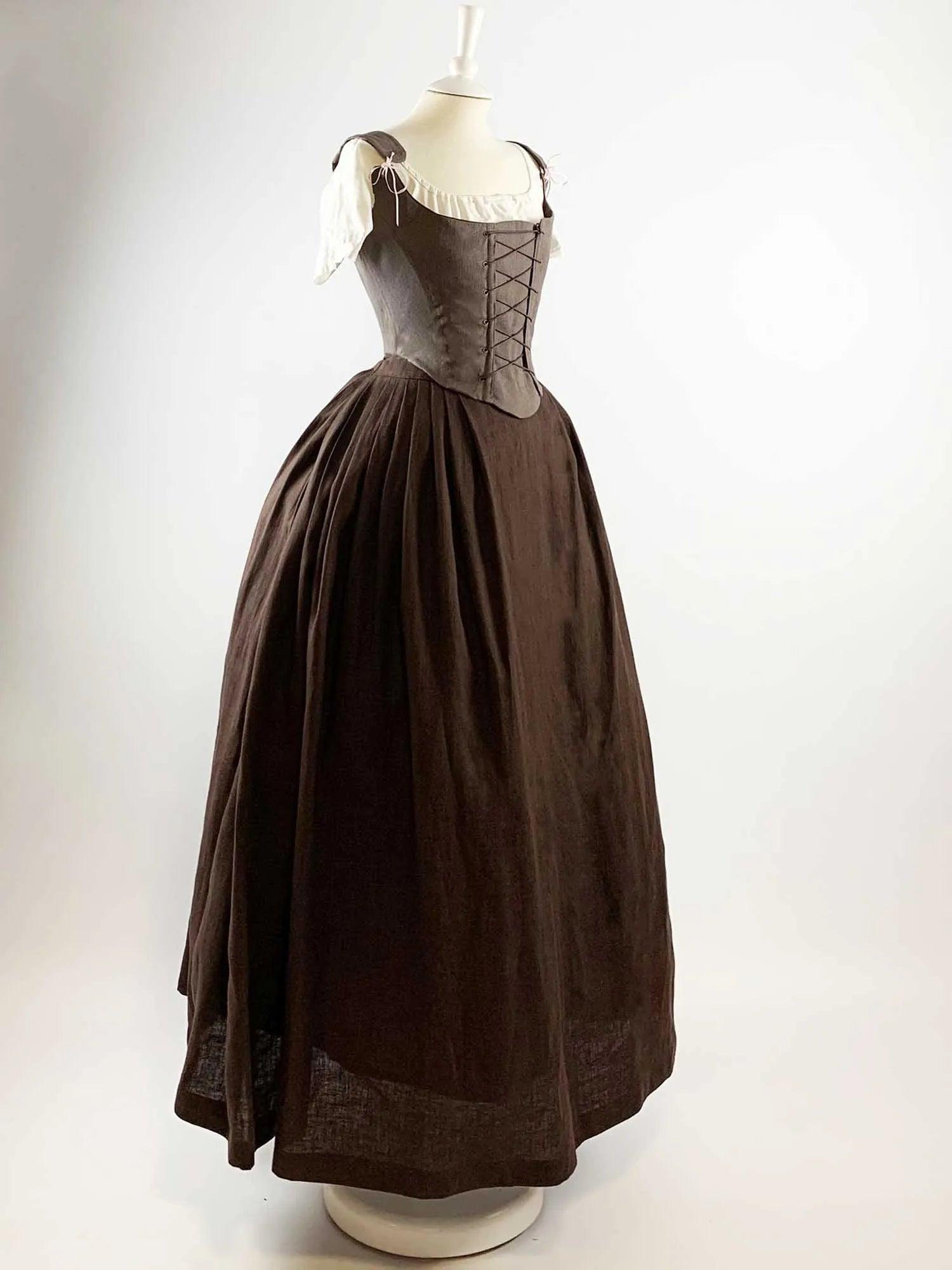 Step into the world of fairytale magic with ISOLDE, our Peasant Costume. Crafted from brown-gray and chocolate linen, this historically accurate ensemble will transport you to another era.