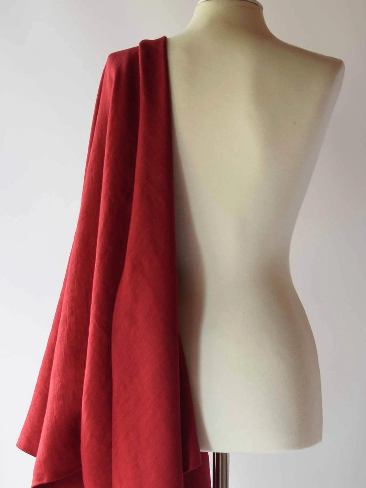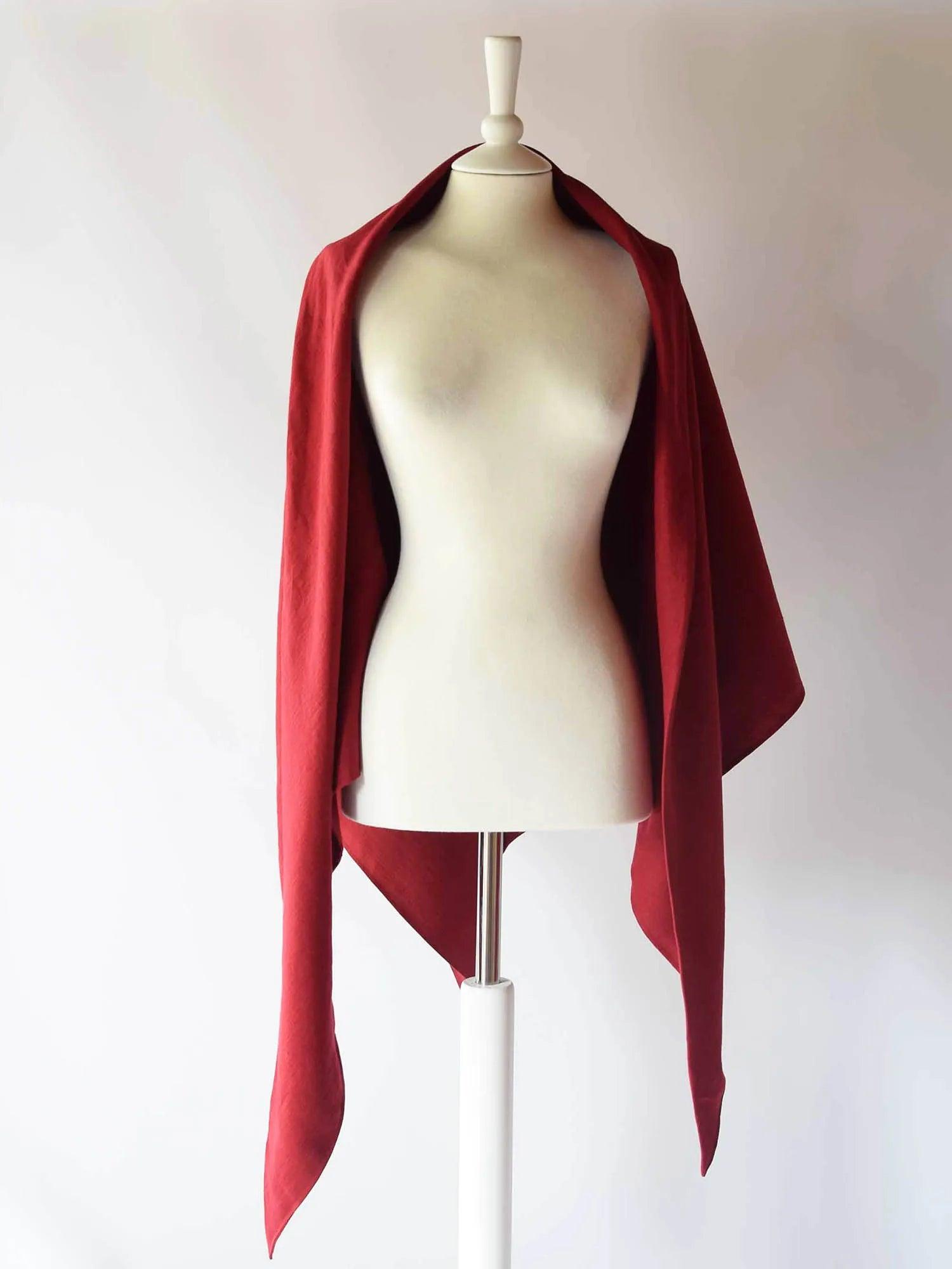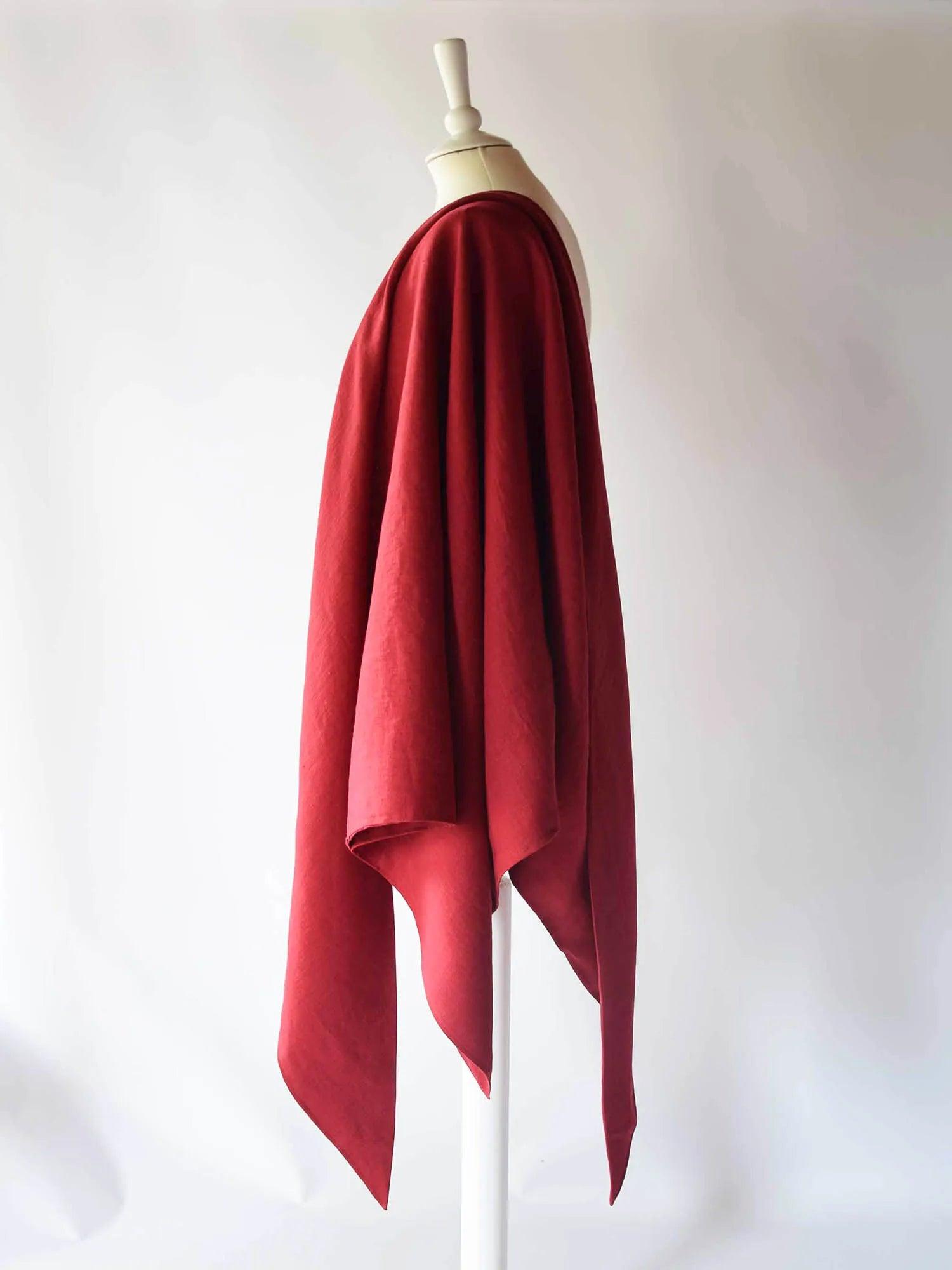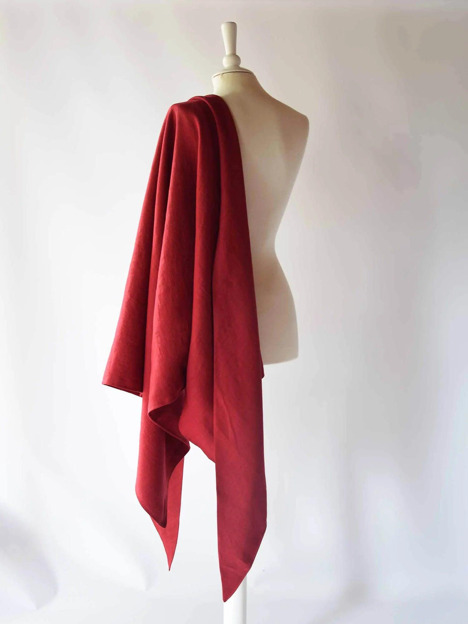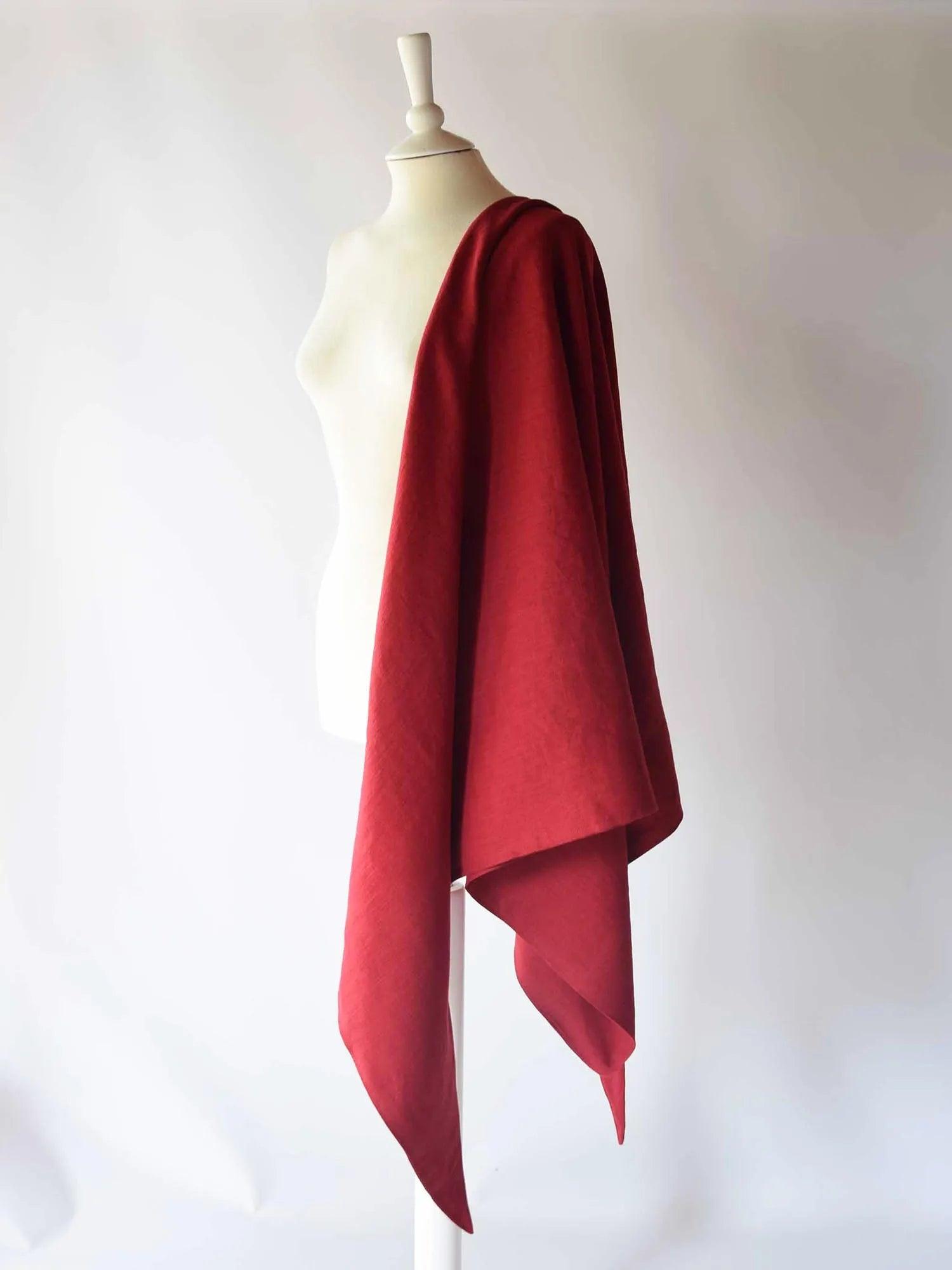 Grand châle en lin rouge cerise