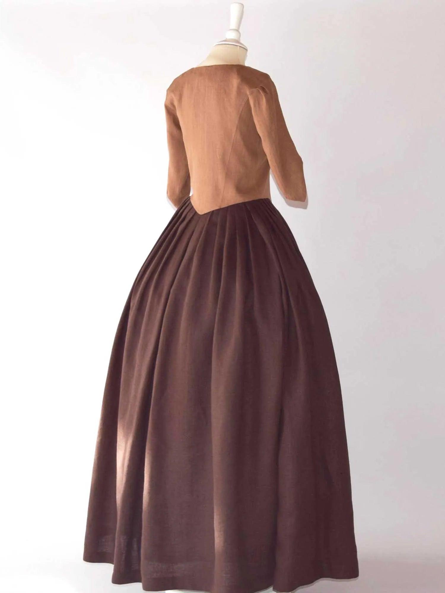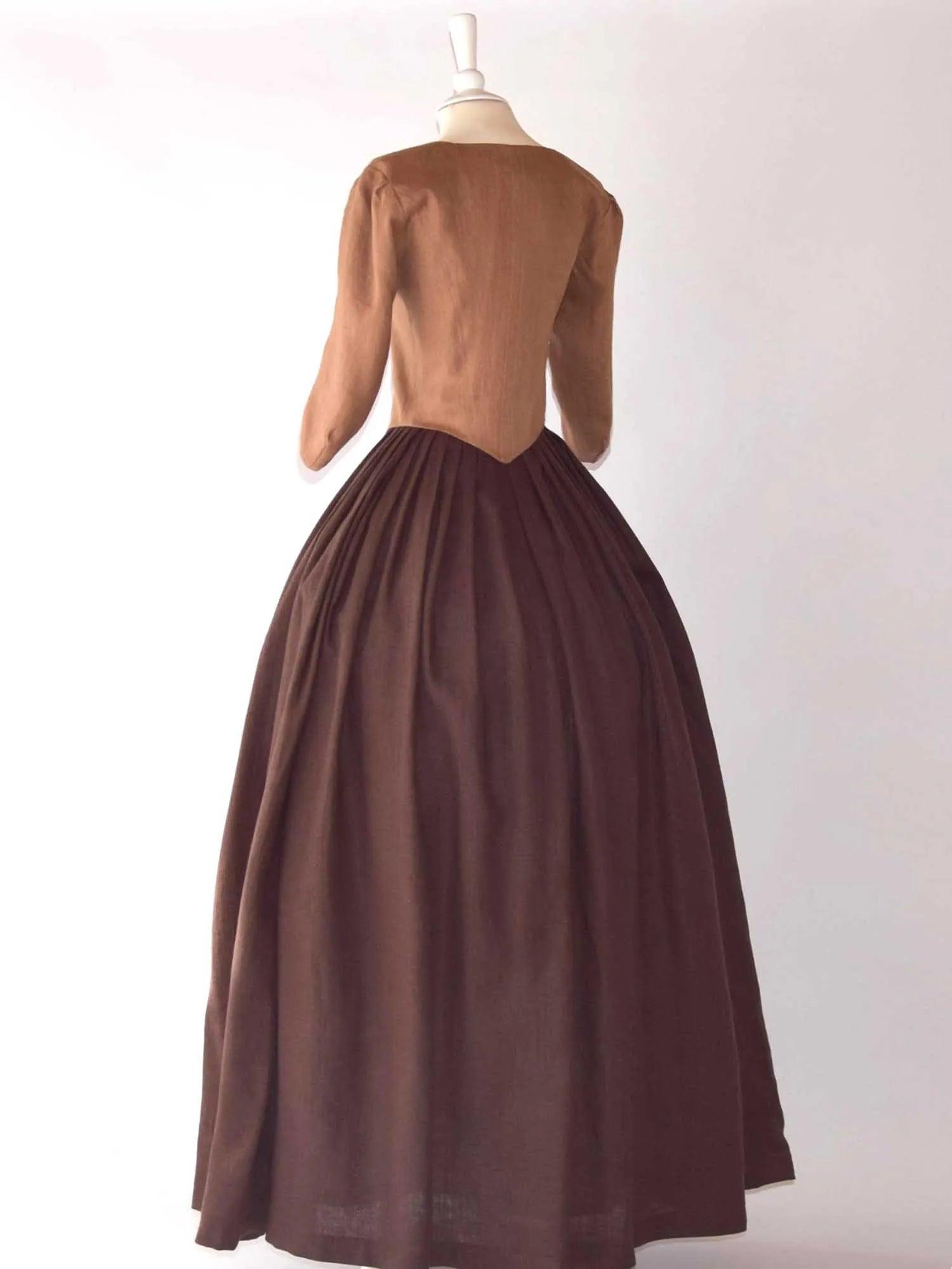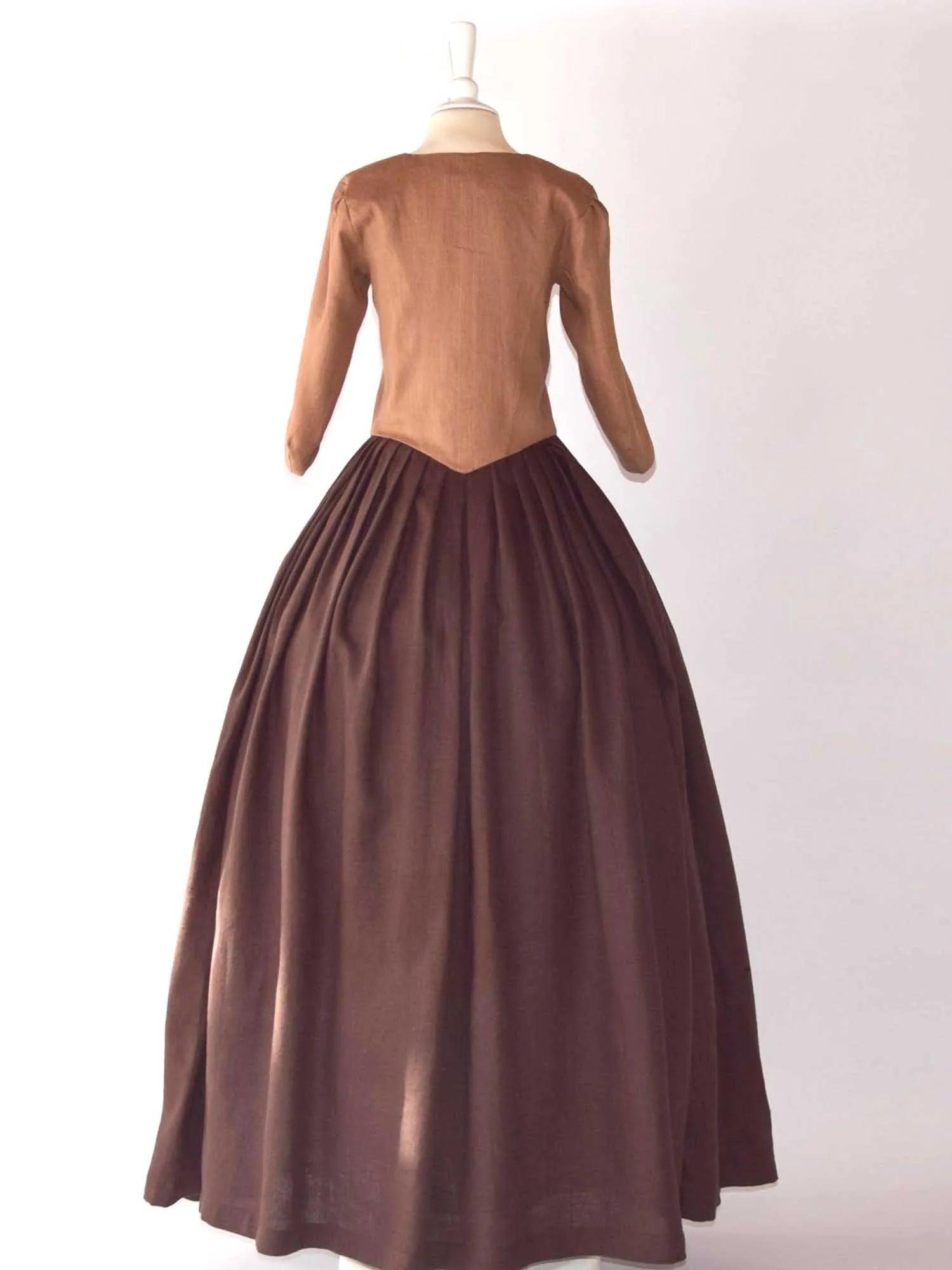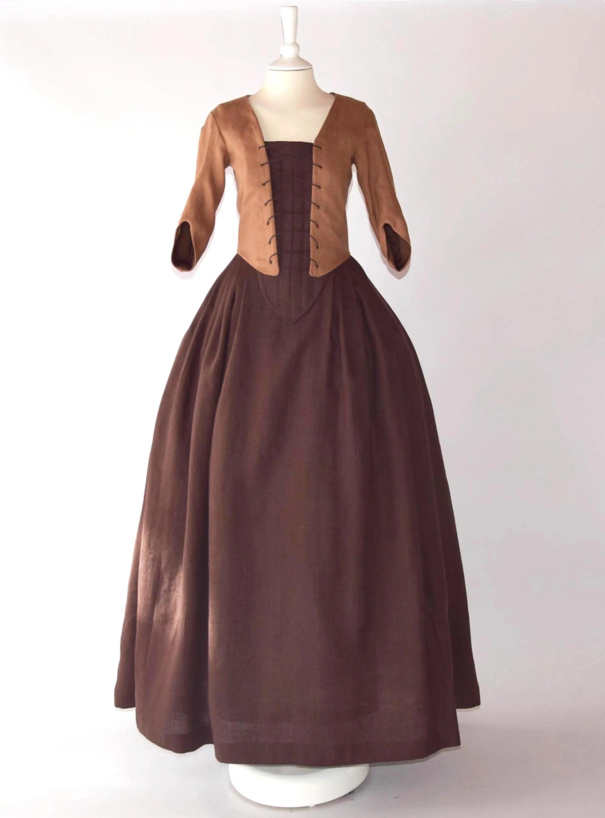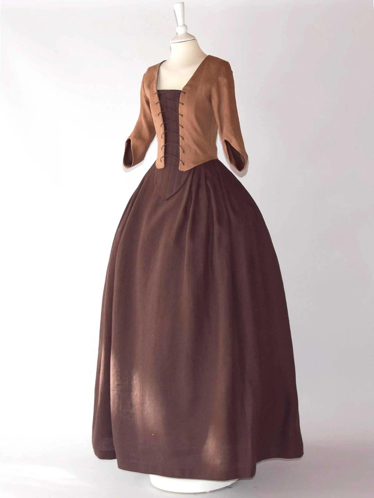 Plongez-vous dans l'élégance romantique du 18ème siècle avec notre costume historique, inspiré du style captivant de Claire Fraser de la série Outlander. Fabriqué à la main dans un luxueux lin caramel et chocolat, cet ensemble de conte de fées est parfait pour créer des moments magiques et inoubliables lors de votre prochaine séance photo, reconstitution historique ou représentation théâtrale.