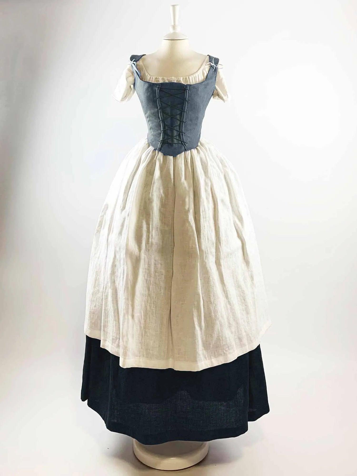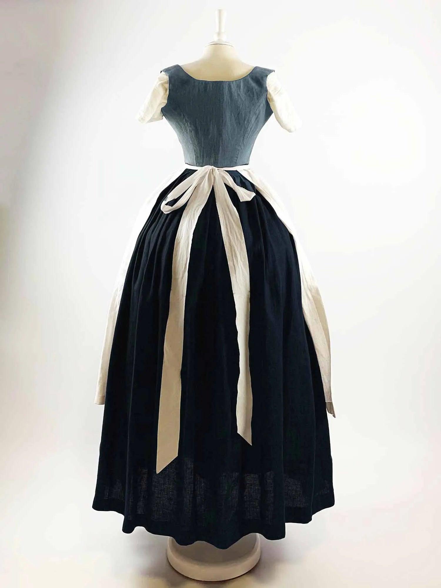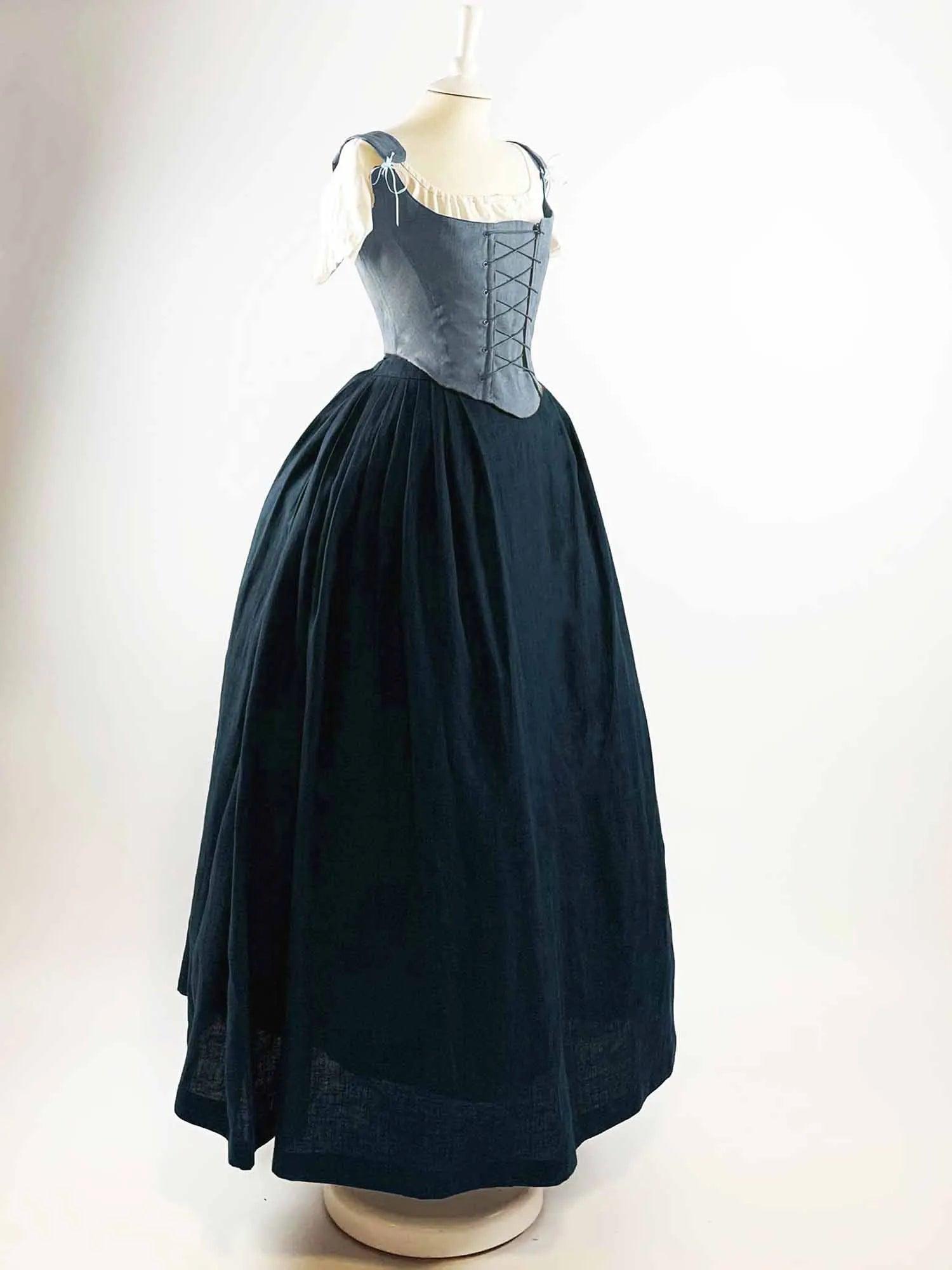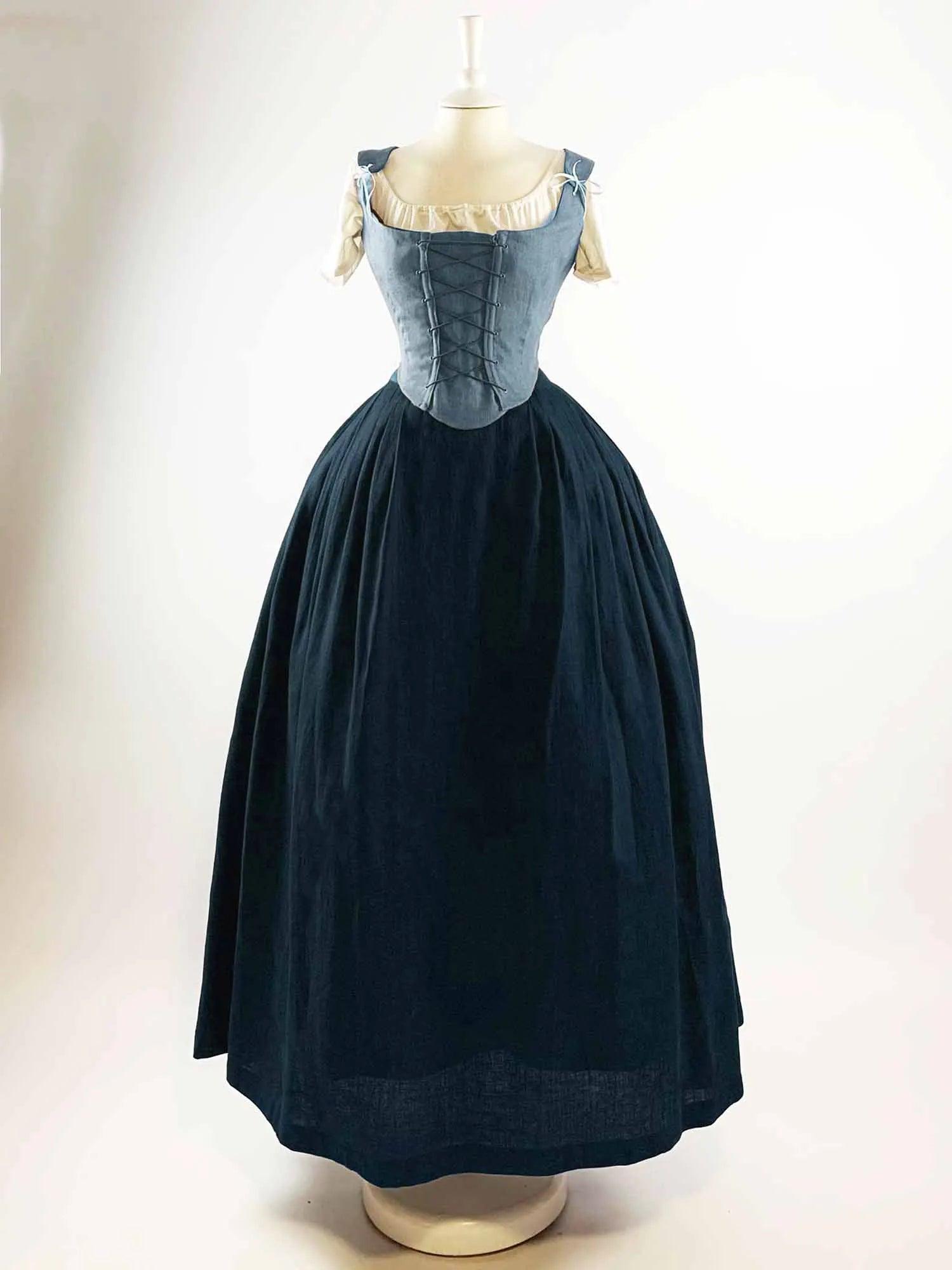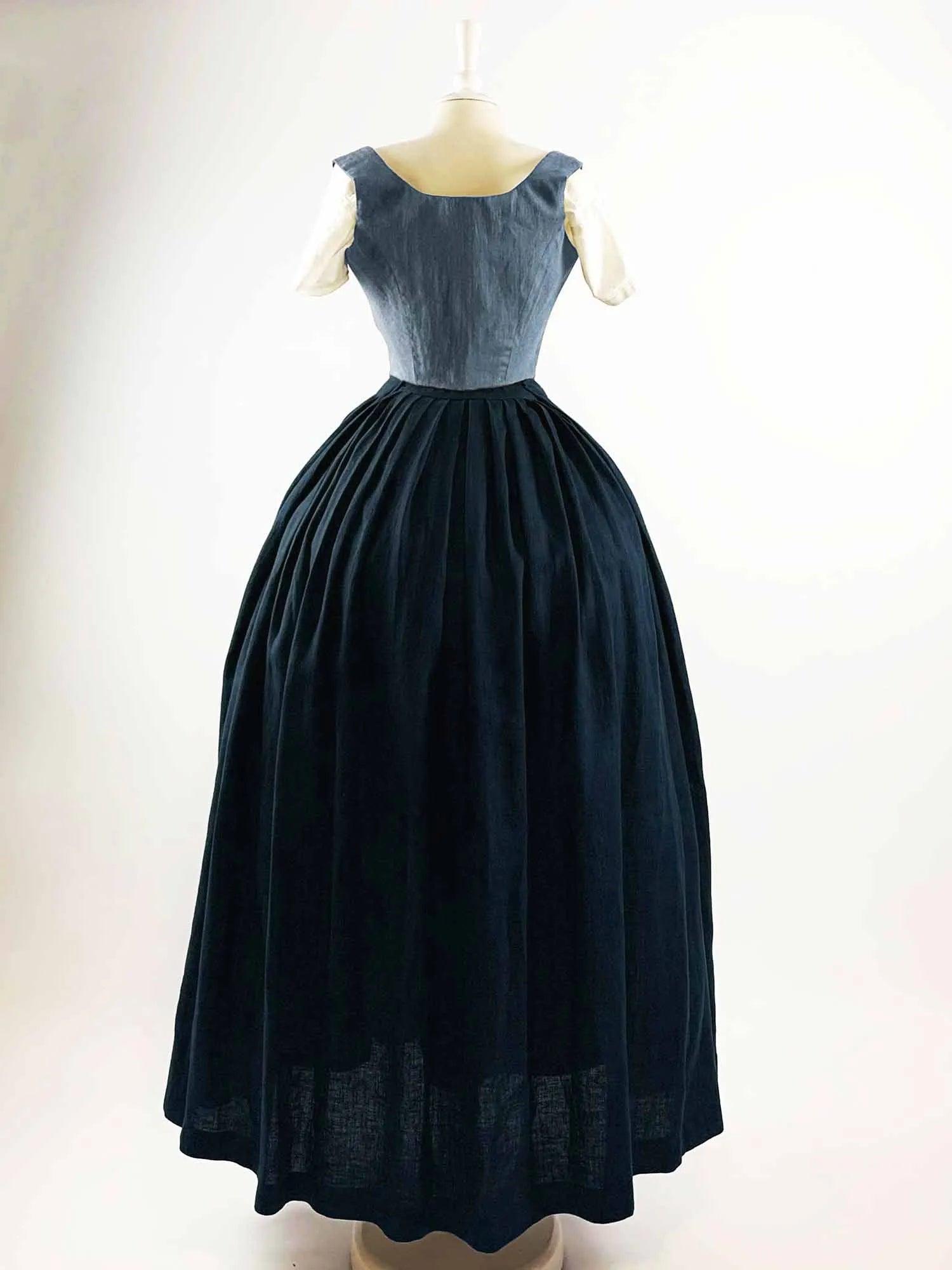 Costume de Paysanne en Lin bleu acier et bleu marine
