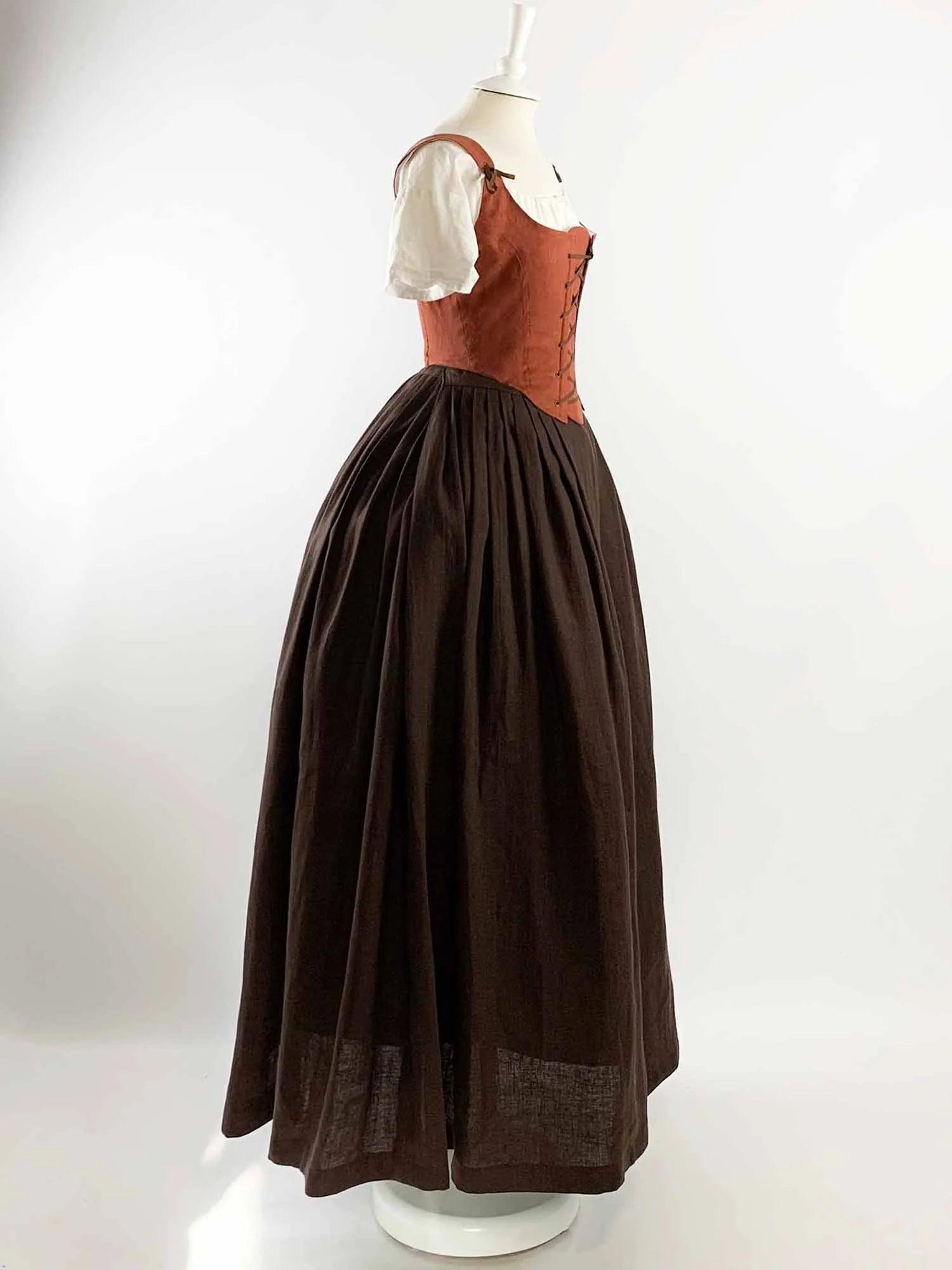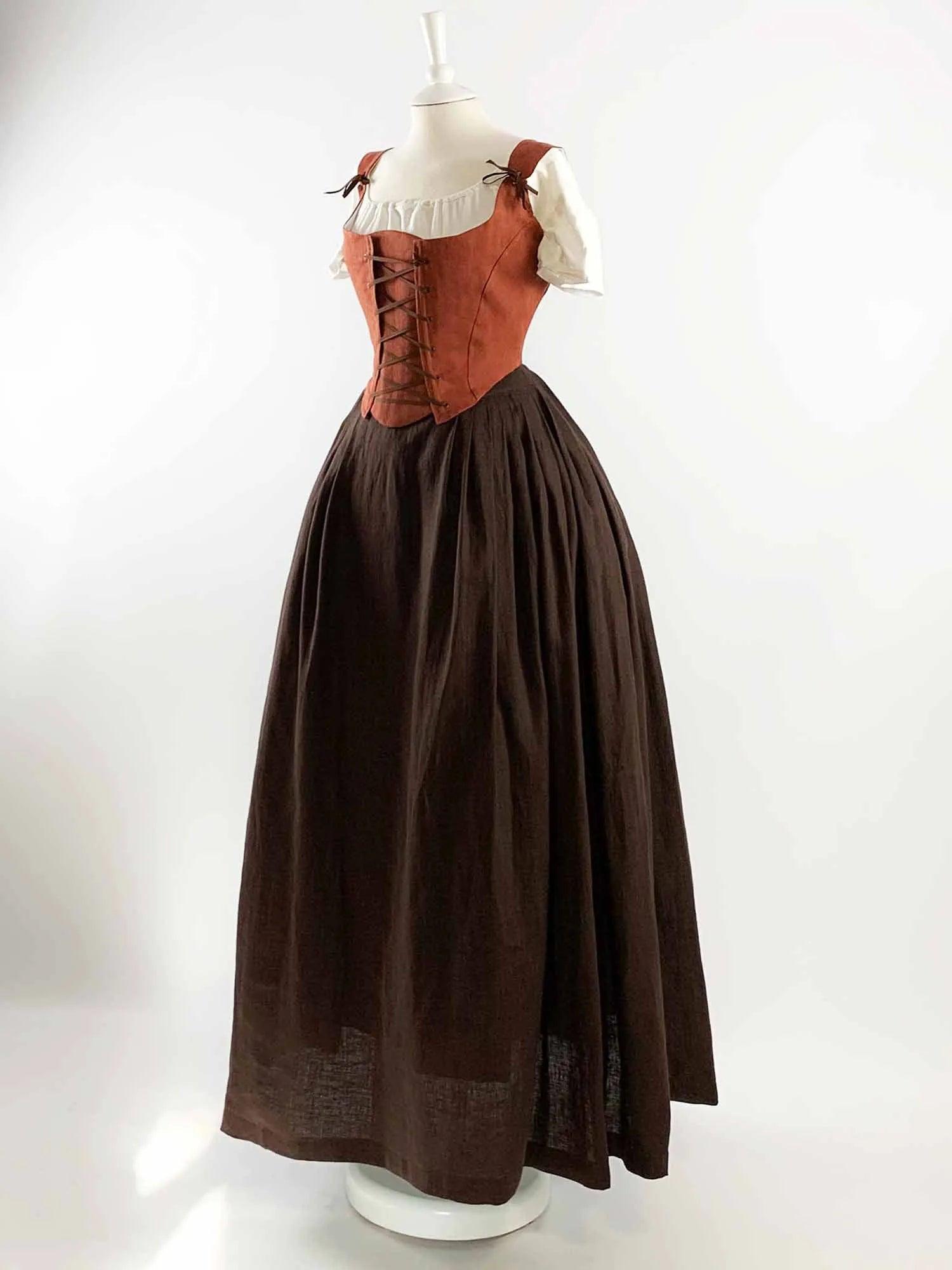 Costume de Paysanne en Lin Terre de Sienne et Chocolat
