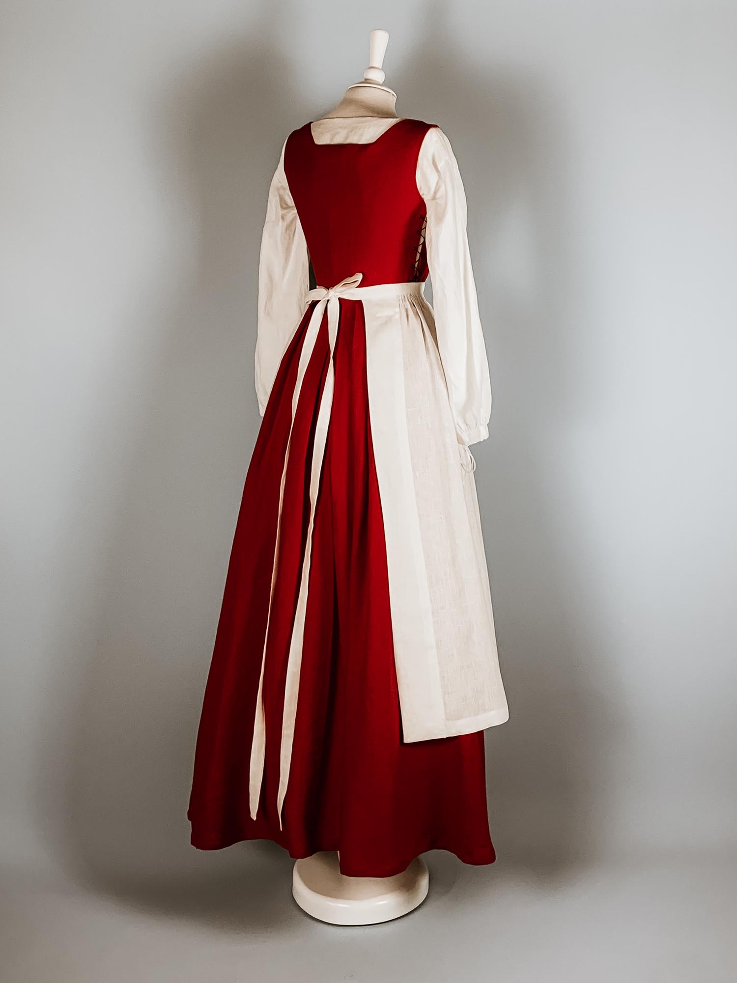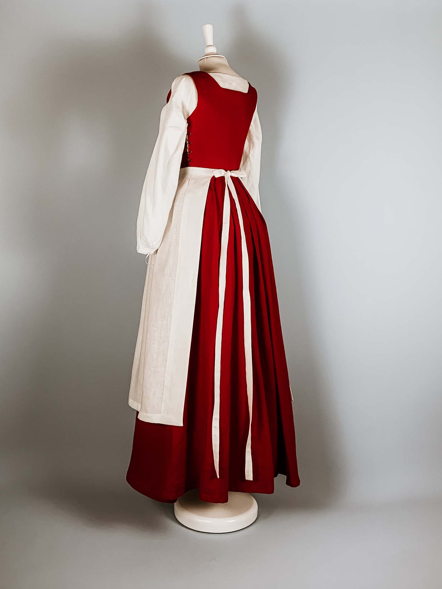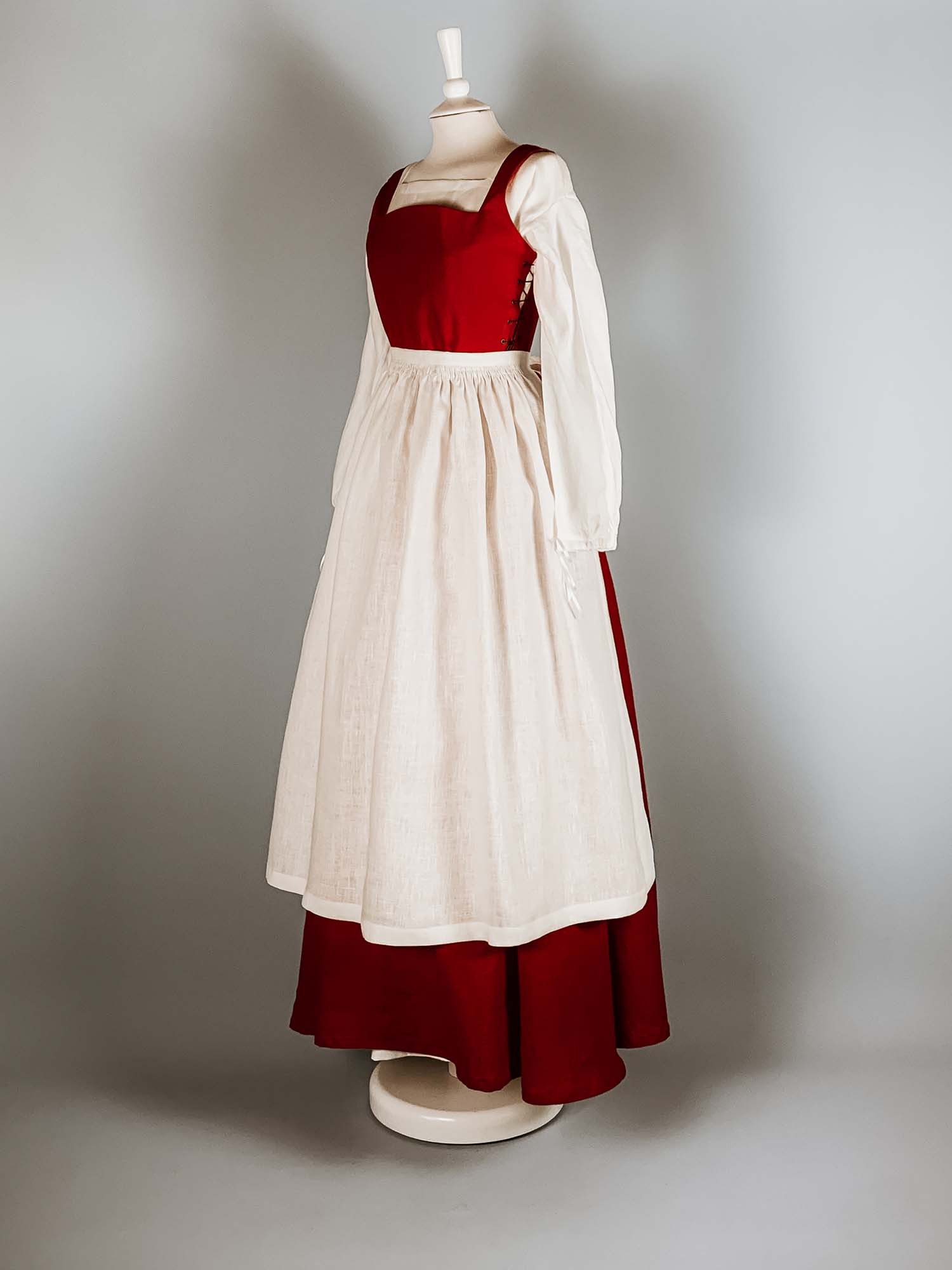 Costume Renaissance CATE en Lin Rouge & Blanc