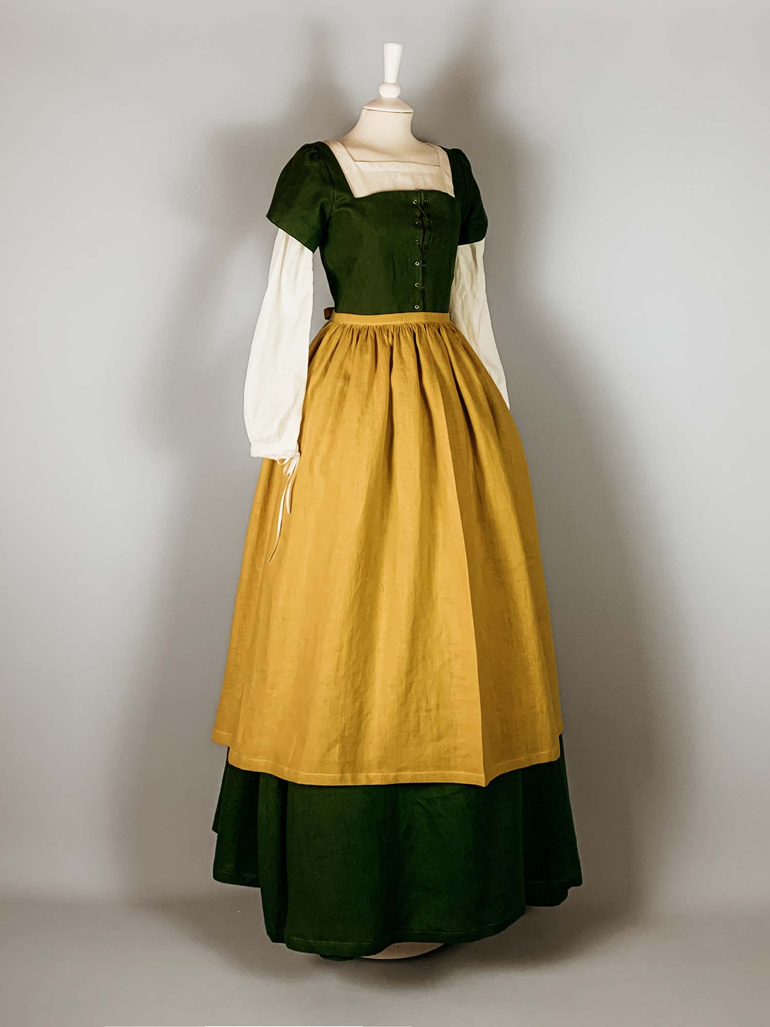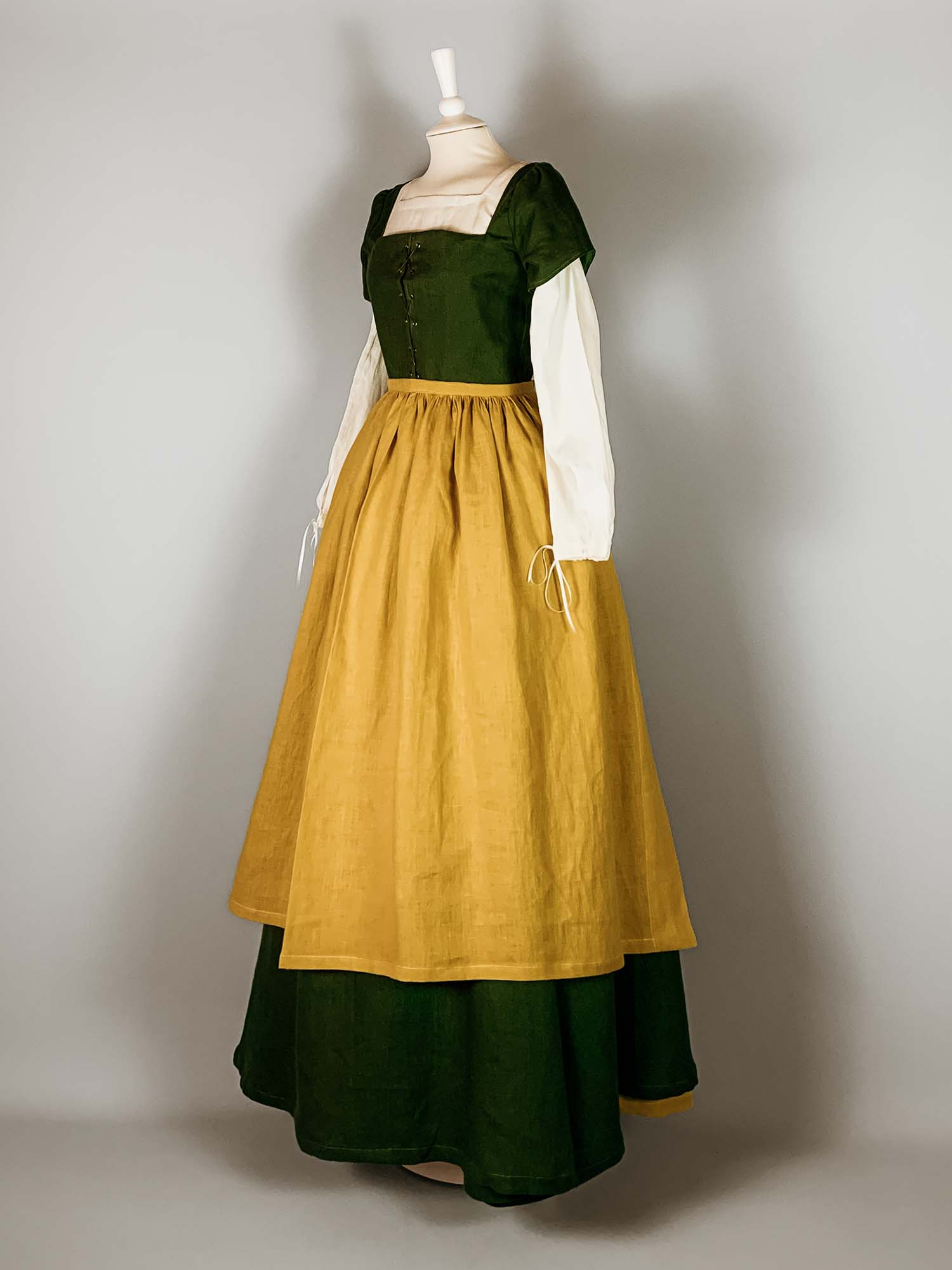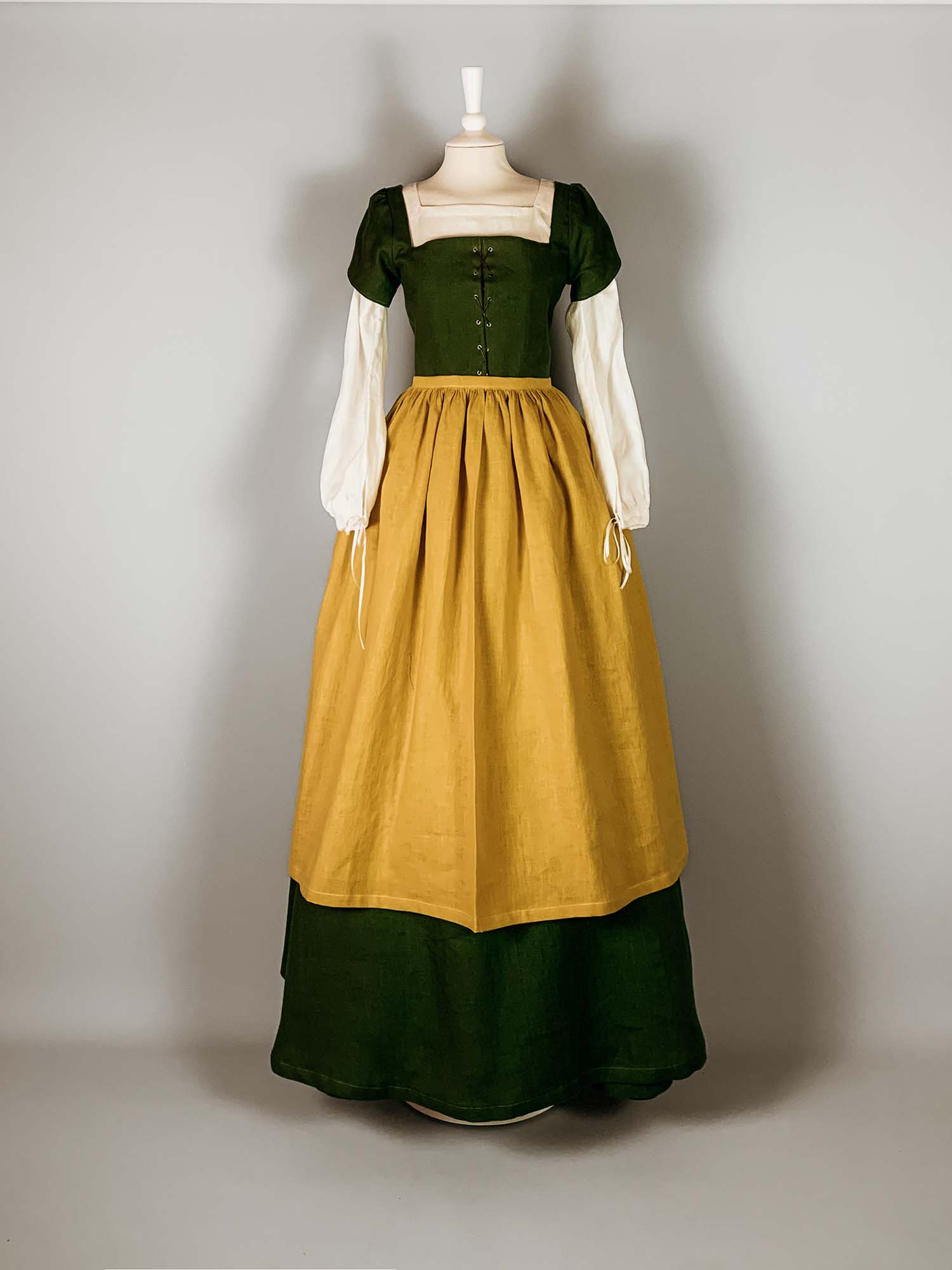Costume Renaissance DIANA en Lin Vert Mousse & Jaune Doré