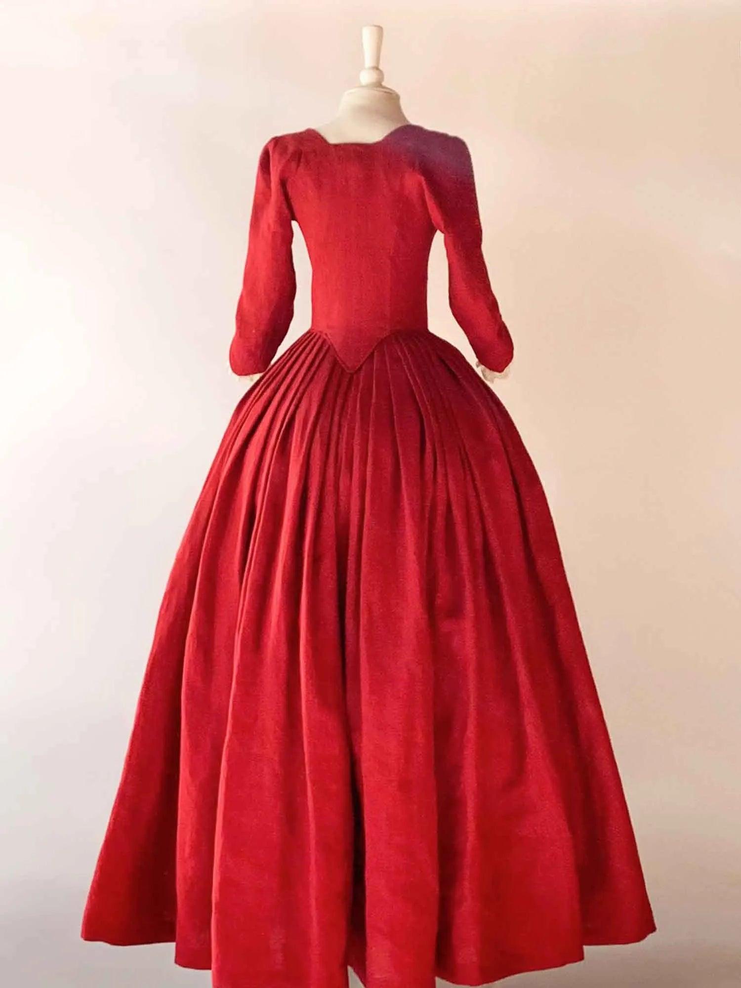 Notre robe du 18ème siècle est confectionnée avec un tissu volumineux et des détails raffinés. Bustier en lin doublé de coton brut. Encolure carrée, rubans de dentelle et baleines synthétiques pour la structure. Peut être acheté séparément ou avec une jupe. La robe est complétée par une large traîne plissée pour un effet spectaculaire.