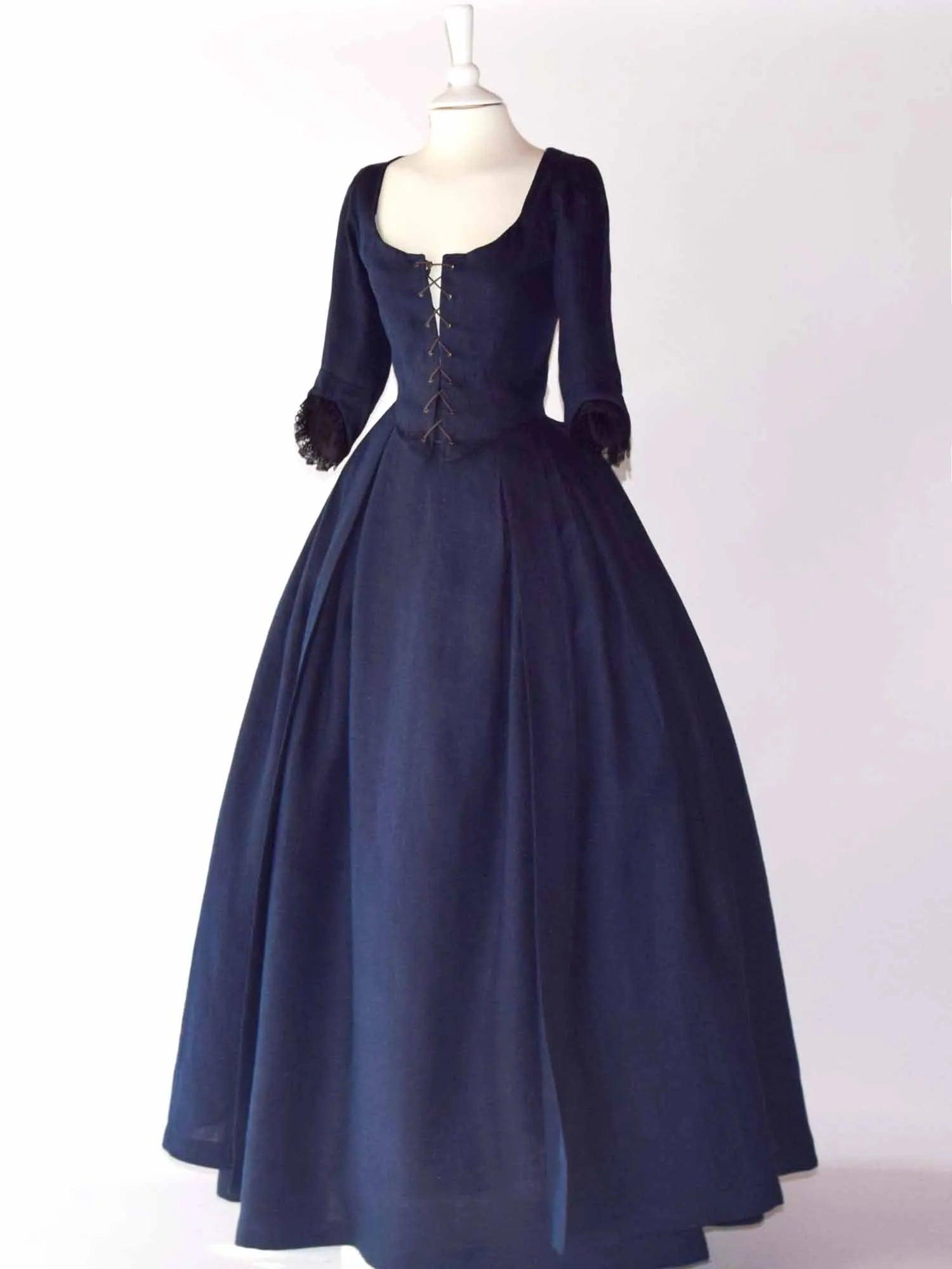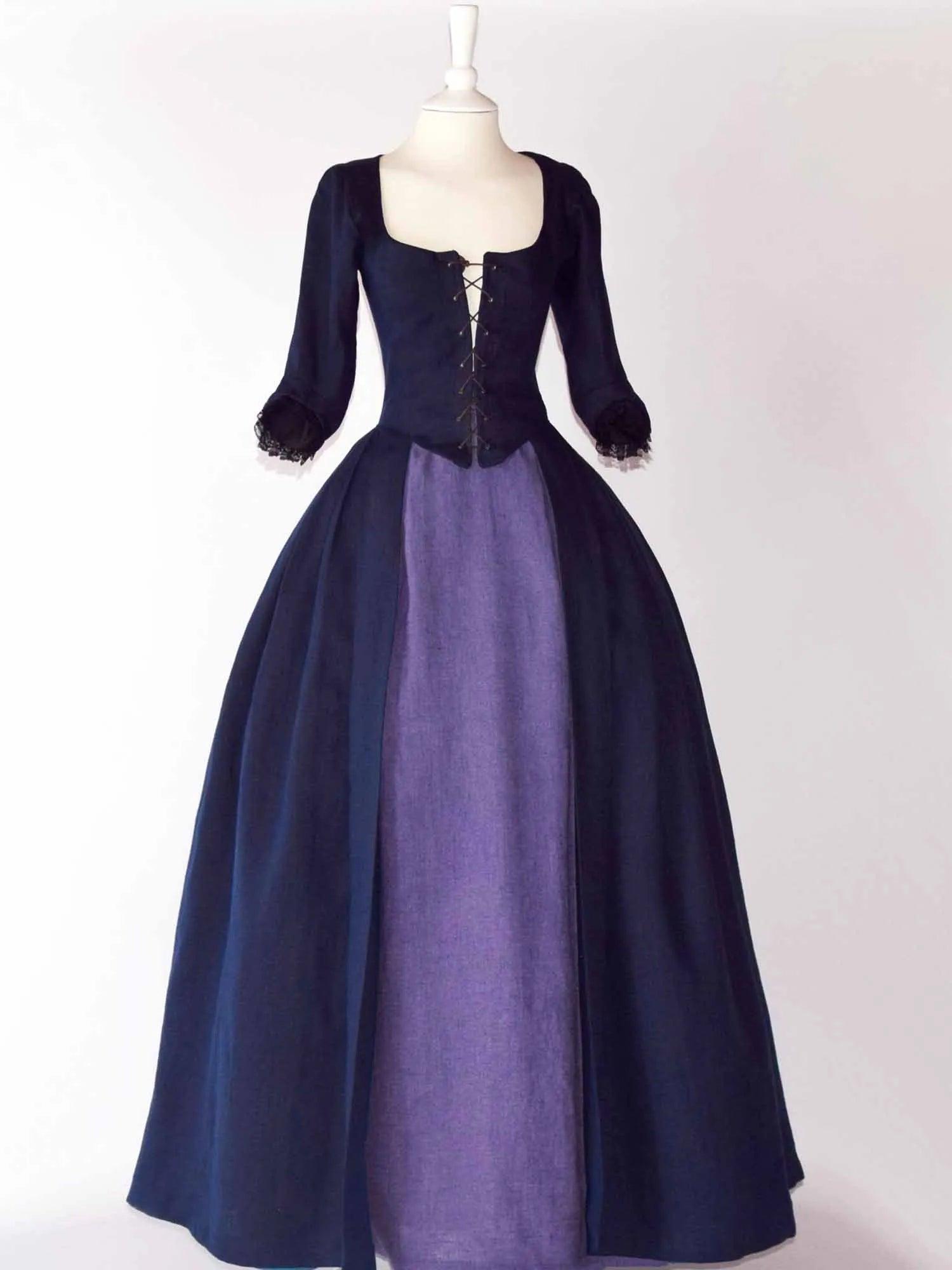 18th Century Overdress In Night Blue Linen & Skirt