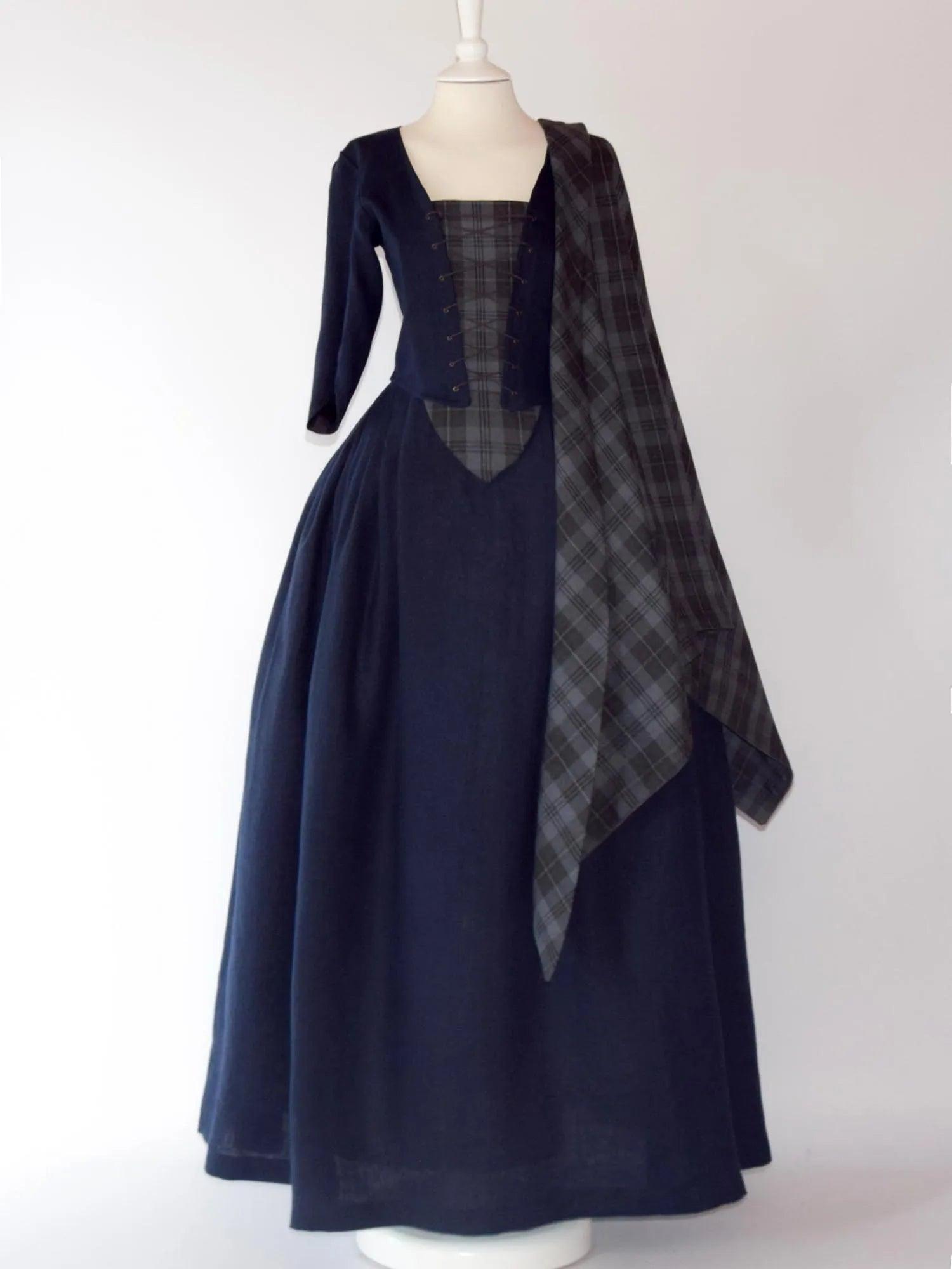 Step into the captivating world of Outlander with our exquisitely handcrafted historical costume, inspired by 18th century attires. Crafted from high-quality linen and Silver Granite Tartan, it transports you to your favorite historical novel.