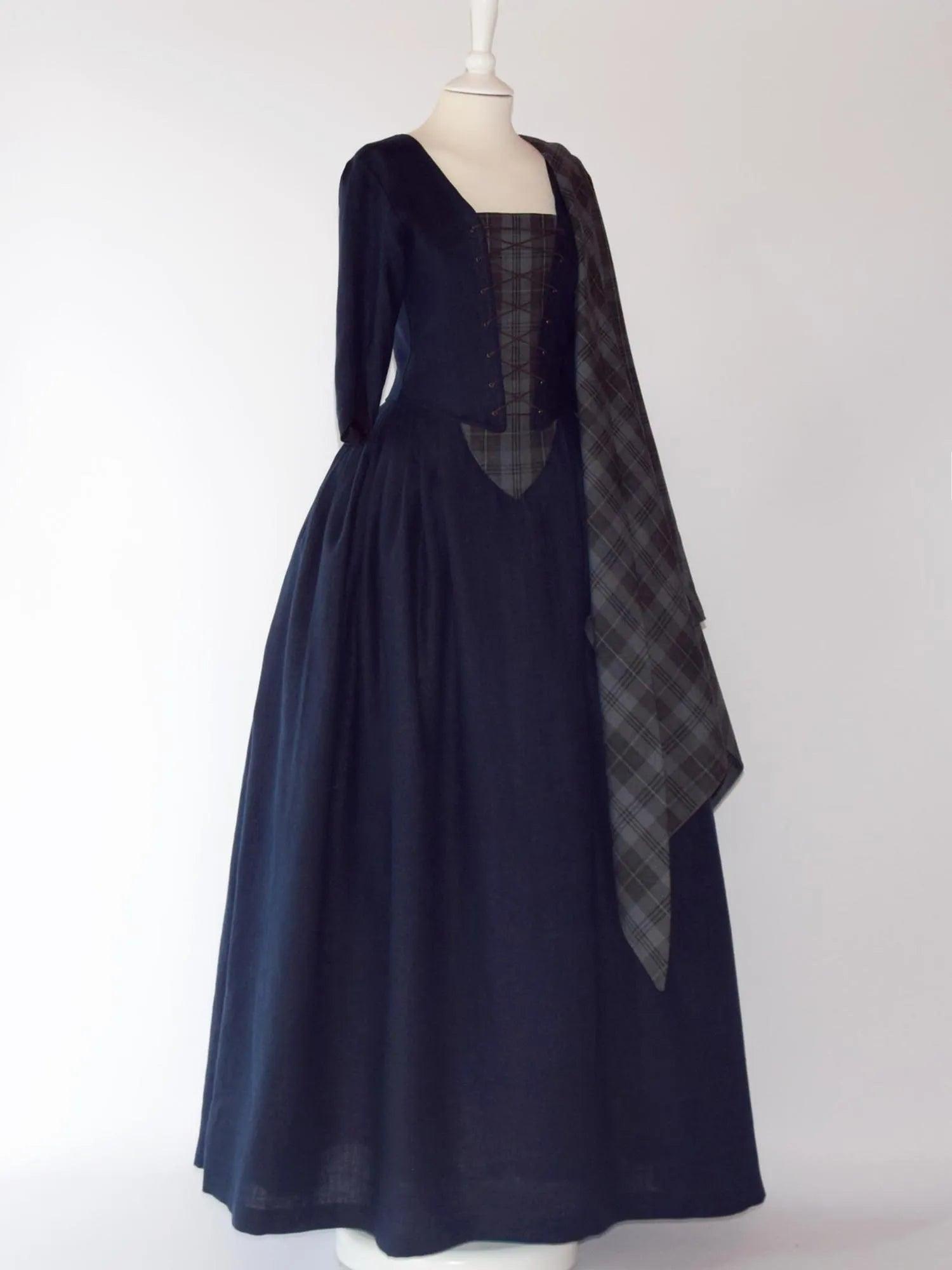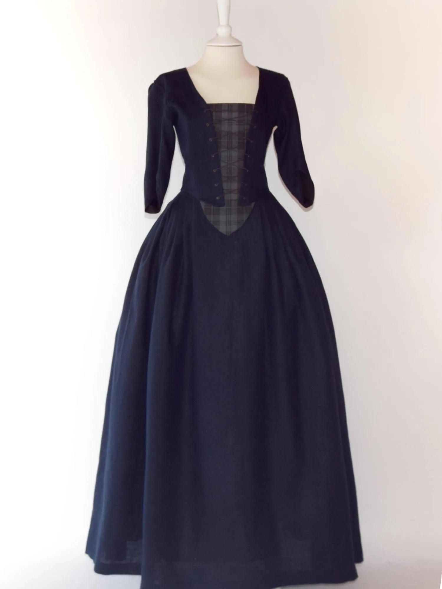 Our historical costume is not only visually stunning but also designed with care and attention to detail. Embrace your inner Claire Fraser and make a statement at your next event. This beautifully designed 18th Century outfit is sure to turn heads and leave a lasting impression.