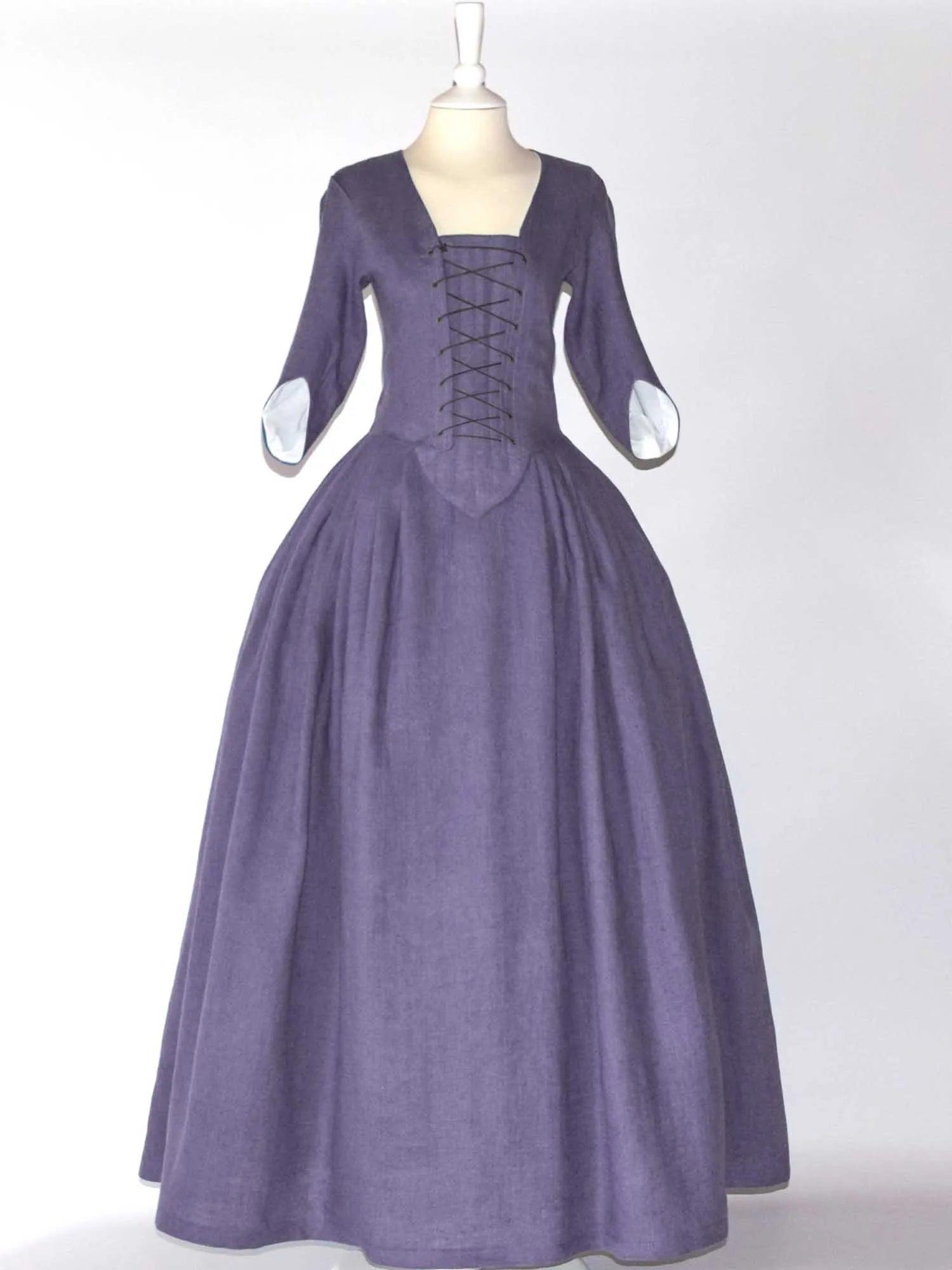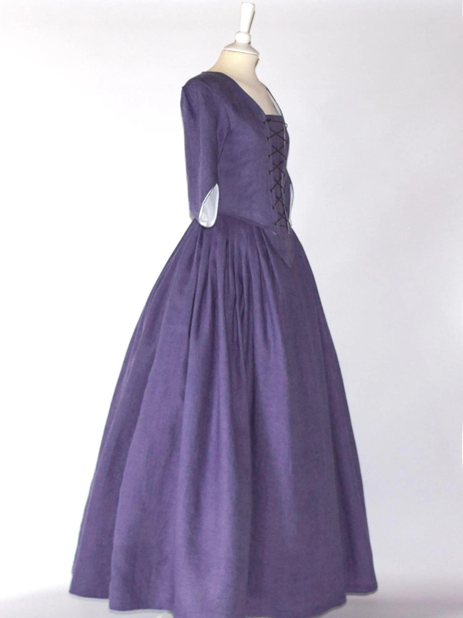 Step into the captivating world of 18th century fashion with our Historical Costume. Inspired by the timeless elegance of the past, this plum purple linen ensemble exudes enchantment and transports you to a dreamy realm of historical events and picturesque photoshoots.