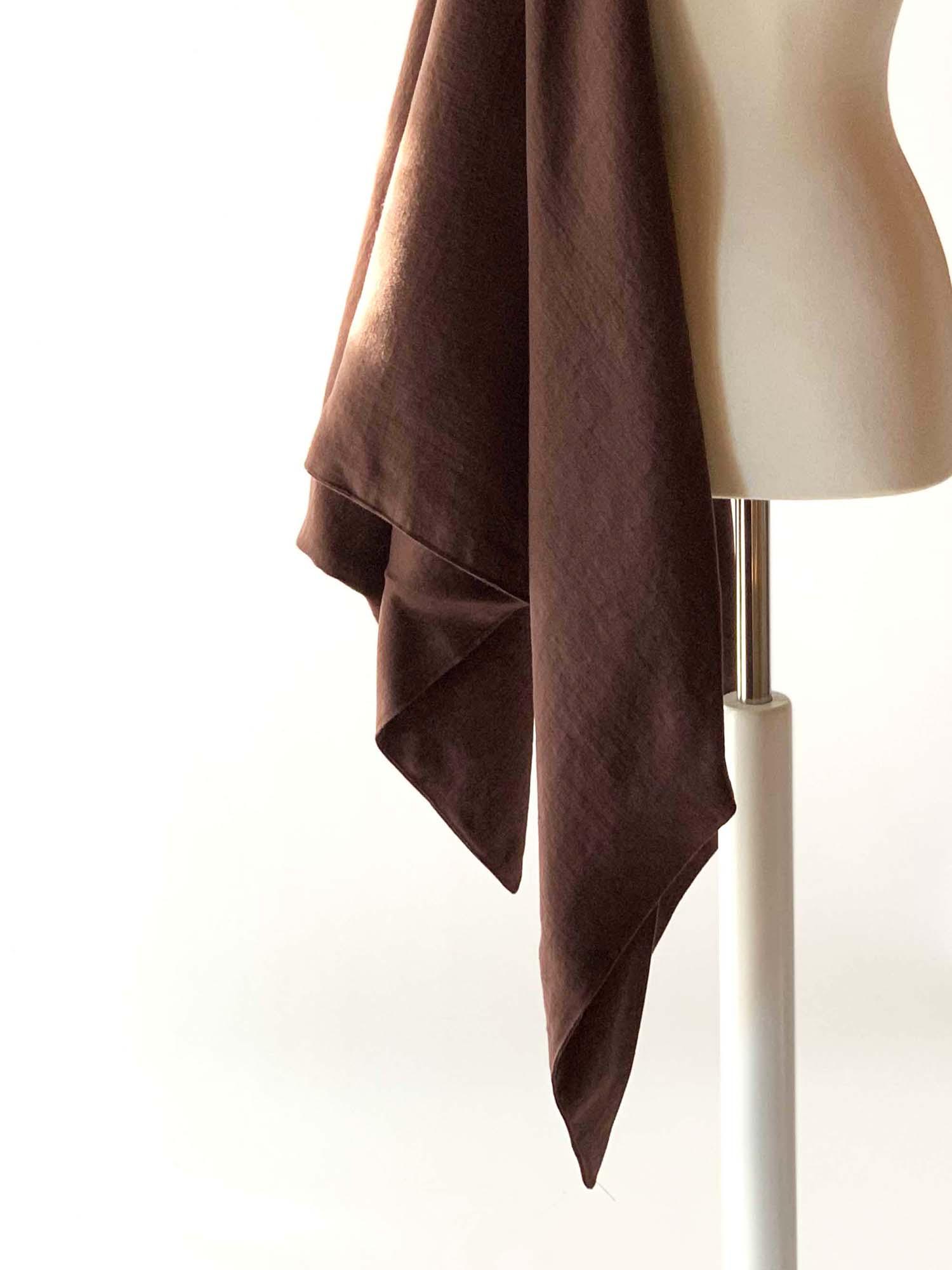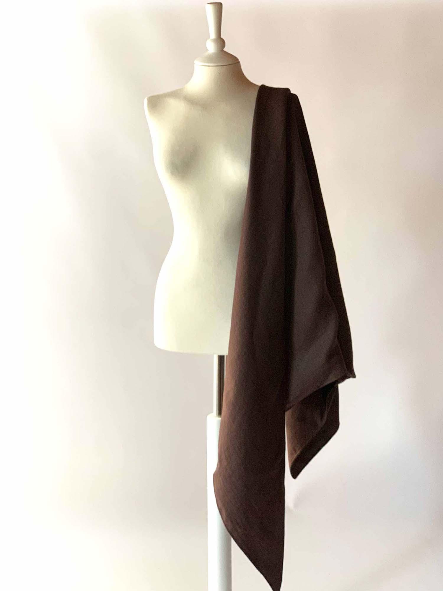 Handcrafted from premium double-layered prewashed linen, it offers warmth and durability. Measuring approximately 150 cm on each side, it provides ample coverage and styling versatility. The classic chocolate hue matches our other models, creating an authentic appearance.