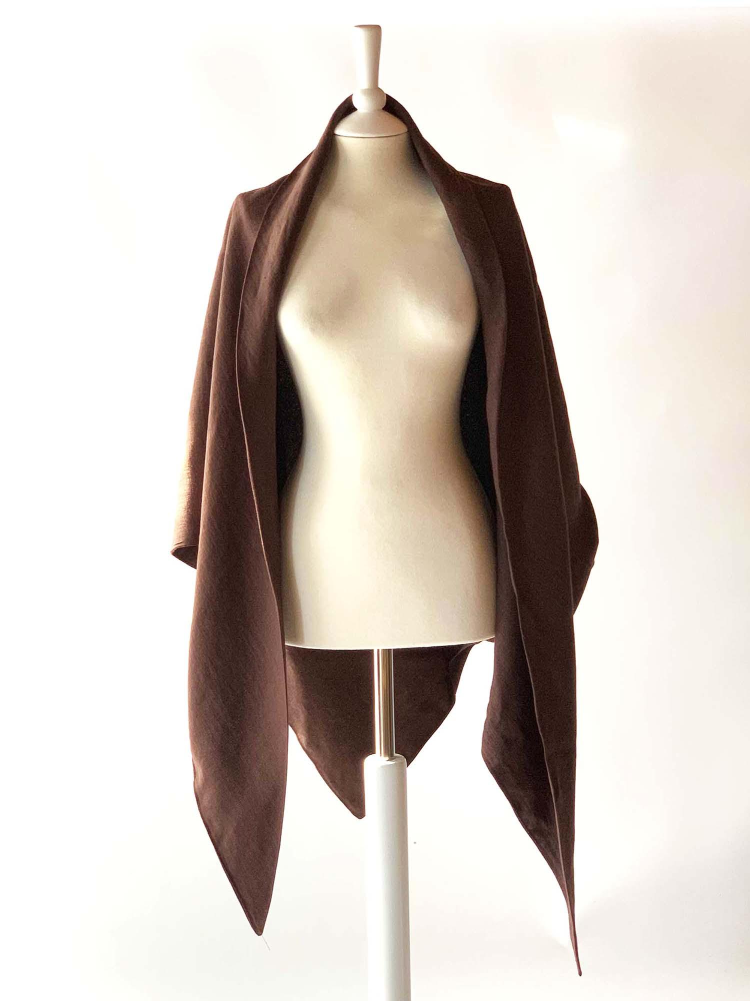 The chocolate color of the shawl is color-matched to all models in the Atelier Serraspina store, allowing you to create a cohesive and eye-catching look.